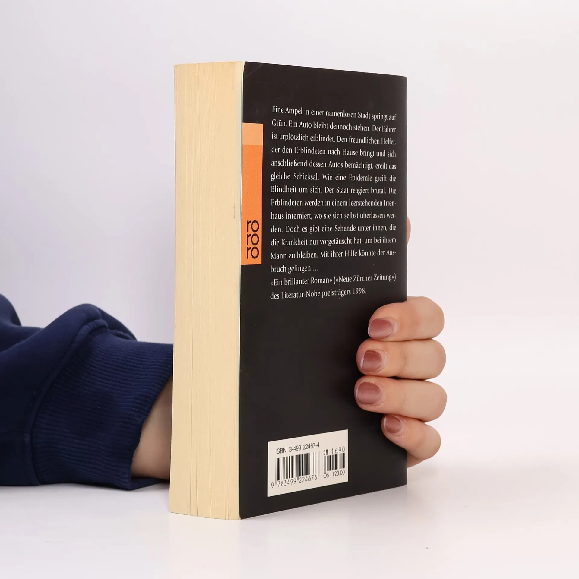 Ein Mann steht an einer roten Ampel und wartet auf Grün, doch plötzlich ist er blind. Sein Augenarzt steht vor einem Rätsel. Noch am gleichen Abend erblindet auch er. Wie eine gefährliche Seuche greift die Blindheit um sich. Der Staat reagiert hilflos und sperrt die Blinden in eine leerstehende Irrenanstalt. Schon bald sind die Zustände in dem Haus katastrophal. Zunehmend sind die Insassen dem Terror ihrer Bewacher ausgesetzt. Unter ihnen ist auch der Arzt mit seiner Frau. Sie ist die einzige Sehende …«Ein brillanter Roman.» (Neue Zürcher Zeitung)
