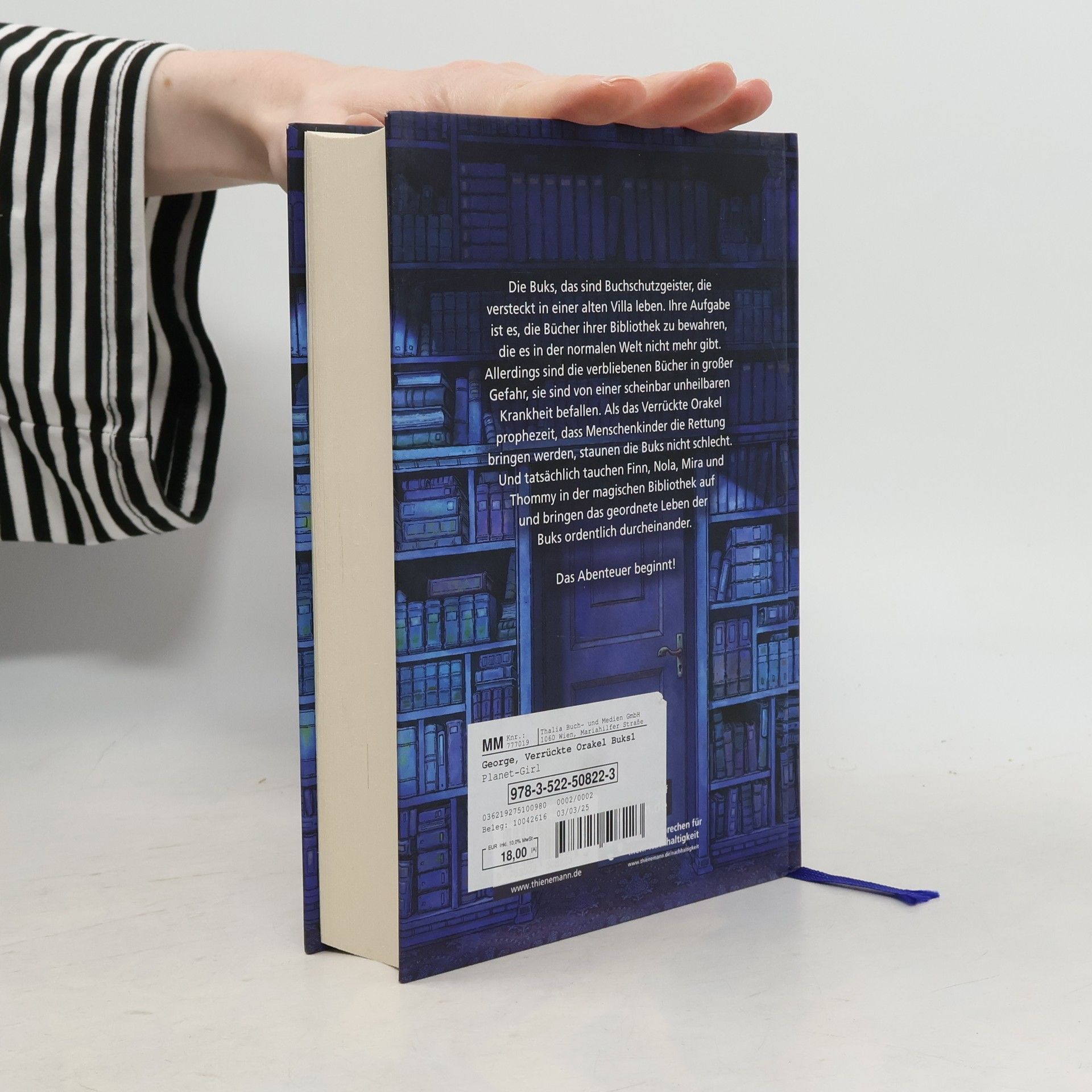 Ein phantastisches Plädoyer fürs Lesen und für die Fantasie! Die Buks, das sind Buchschutzgeister, die versteckt in einer alten Villa leben. Ihre Aufgabe ist es, die Bücher ihrer Bibliothek zu bewahren, die es in der normalen Welt nicht mehr gibt. Allerdings sind die verbliebenen Bücher in großer Gefahr, sie sind von einer scheinbar unheilbaren Krankheit befallen. Als das Verrückte Orakel prophezeit, dass Menschenkinder die Rettung bringen werden, staunen die Buks nicht schlecht. Und tatsächlich tauchen Finn, Nola, Mira und Thommy in der magischen Bibliothek auf und bringen das geordnete Leben der Buks ordentlich durcheinander. Band 2: "Die magische Bibliothek der Buks – Das verfluchte Medaillon" vom Bestseller-Autorenduo Nina George und Jens J. Kramer