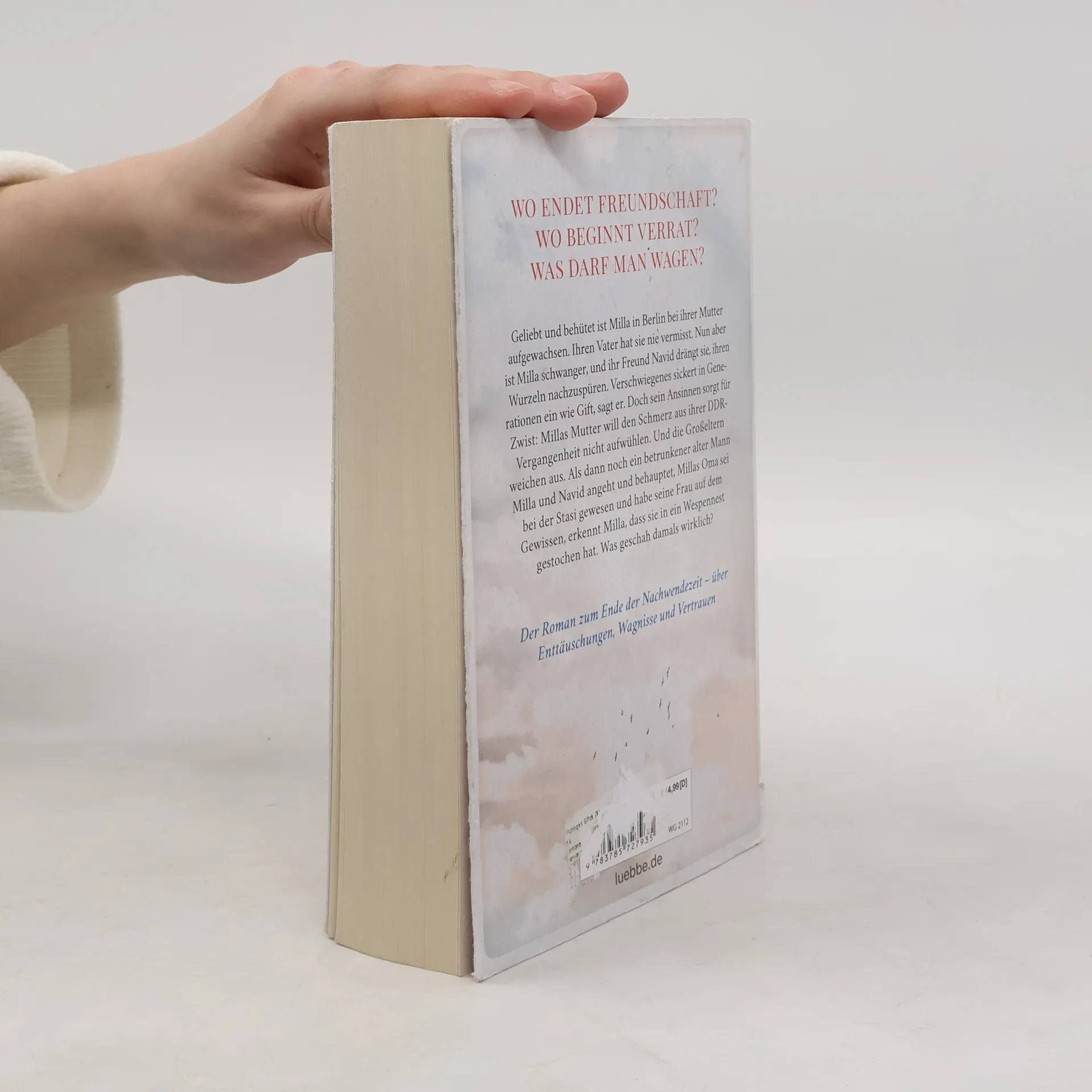 Der Roman zum Ende der Nachwendezeit - über Enttäuschungen, Wagnisse und VertrauenGeliebt und behütet ist Milla in Berlin bei ihrer Mutter aufgewachsen. Ihren Vater hat sie nie vermisst. Nun aber ist Milla schwanger, und ihr Freund Navid drängt sie, ihren Wurzeln nachzuspüren. Verschwiegenes sickert in Generationen ein wie Gift, sagt er. Doch sein Ansinnen sorgt für Zwist: Millas Mutter will den Schmerz aus ihrer DDR-Vergangenheit nicht aufwühlen. Und die Großeltern weichen aus. Als dann noch ein betrunkener alter Mann Milla und Navid angeht und behauptet, Millas Oma sei bei der Stasi gewesen und habe seine Frau auf dem Gewissen, erkennt Milla, dass sie in ein Wespennest gestochen hat. Was geschah damals wirklich?