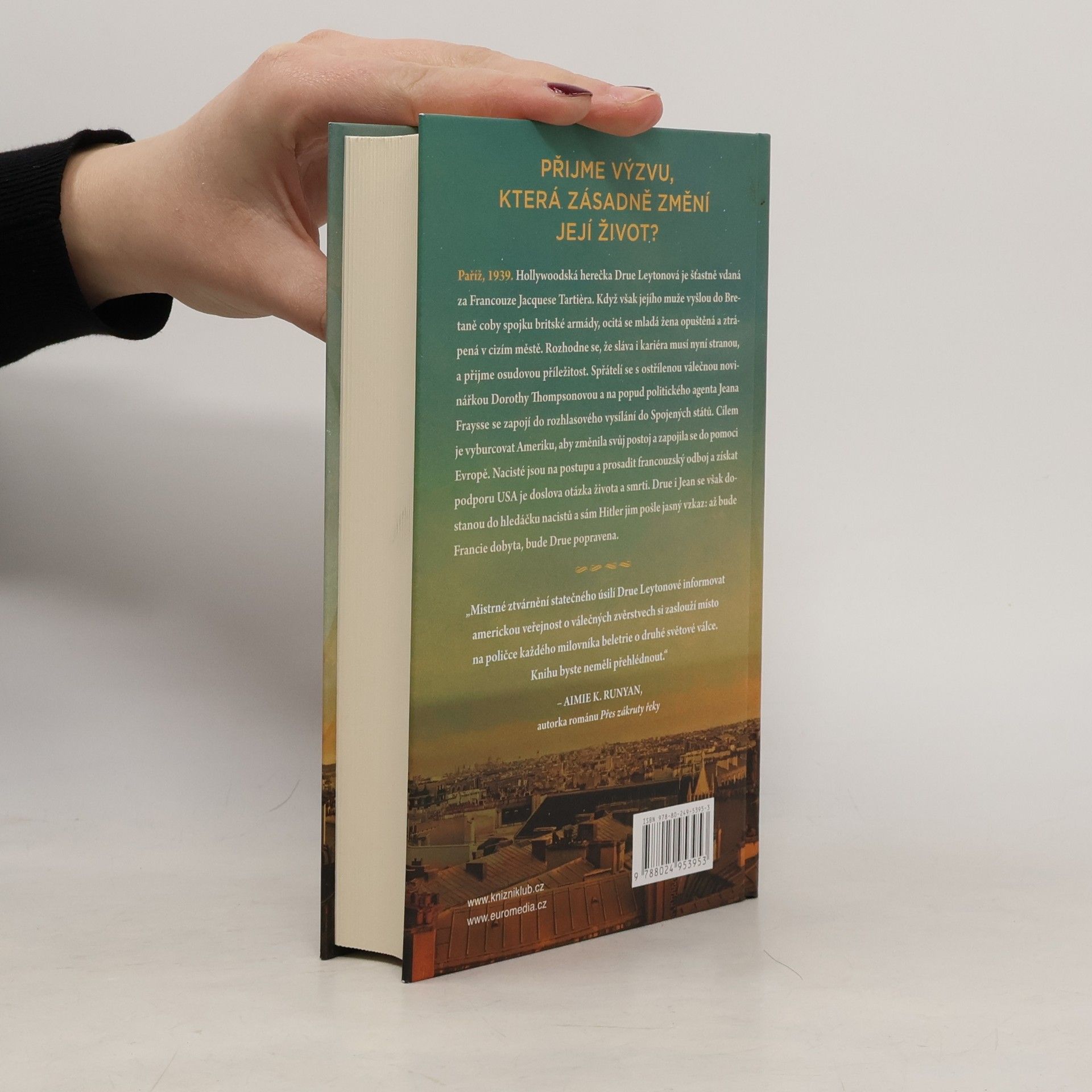 Paříž, 1939. Hollywoodská herečka Drue Leytonová je šťastně vdaná za Francouze Jacquese Tartiera. Když však jejího muže vyšlou do Bretaně coby spojku britské armády, ocitá se mladá žena opuštěná a ztrápená v cizím městě. Na svou slávu a kariéru teď nedosáhne, proto přijímá příležitost, která její život změní už navždy. Spřátelí se s ostřílenou válečnou novinářkou Dorothy Thompsonovou a na popud politického agenta Jeana Fraysse se zapojí do rozhlasového vysílání do Spojených států. Cílem je vyburcovat Ameriku z apatie a v době, kdy jsou nacisté na postupu, prosadit odboj a pomoc ze strany USA. Drue a Jean se však stanou podezřelými a sám Hitler jim pošle jasný vzkaz: až bude Francie dobyta, bude Drue popravena.