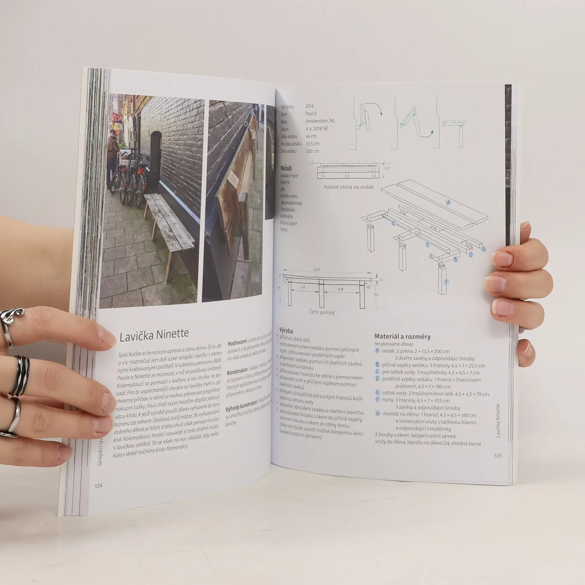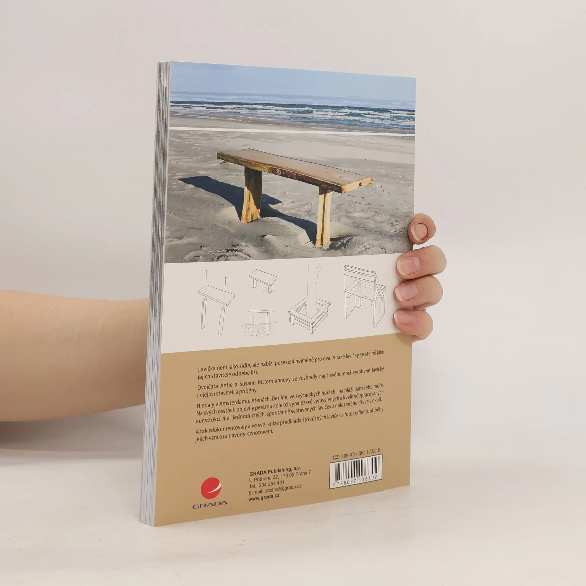 Kniha plná inspirace a přehledných návodů pro každého, kdo někdy snil o tom, že si vyrobí svoji vlastní lavičku. Dvojčata Antje a Susann Rittermannovy si pro svou novou knihu vyfotografovala zajímavé dřevěné lavičky v Amsterdamu, Aténách, Berlíně, Halle, Stuttgartu, na pláži Rujána i v horských vesnicích Alp a u všech našly i jejich původní konstruktéry. S jejich souhlasem jsou v knize zveřejněné konstrukční nákresy s návody, které umožní si každou lavičku svépomocí snadno postavit. Kromě jednoduchých laviček jsou popsané i lavičky s opěradly, područkami, instalované ve výklencích, dlouhé, sklopné či objímající stromy.