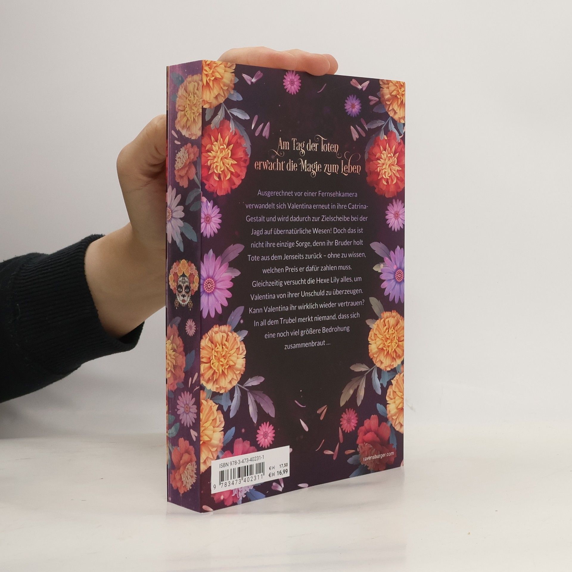 *** Limitierte Auflage mit farbigem Buchschnitt! Nur solange der Vorrat reicht! *** Am Tag der Toten erwacht die Magie zum Leben Ausgerechnet vor einer Fernsehkamera verwandelt sich Valentina erneut in ihre Catrina-Gestalt und wird dadurch zur Zielscheibe bei der Jagd auf übernatürliche Wesen! Doch das ist nicht ihre einzige Sorge, denn ihr Bruder holt Tote aus dem Jenseits zurück – ohne zu wissen, welchen Preis er dafür bezahlen muss. Gleichzeitig versucht die Hexe Lily alles, um Valentina von ihrer Unschuld zu überzeugen. Kann Valentina ihr wirklich wieder vertrauen? In all dem Trubel merkt niemand, dass sich eine noch viel größere Bedrohung zusammenbraut … *** Urban Romantasy vor der atmosphärischen Kulisse des Día de los Muertos! Episch. Traumhaft. Magisch! *** Entdecke die fantastisch-romantischen Buchwelten von Sandra Grauer bei Ravensburger: Flowers & Bones Band 1: Tag der Seelen Band 2: Kuss der Catrina Flame & Arrow Band 1: Drachenprinz Band 2: Elfenkriegerin Clans of London Band 1: Hexentochter Band 2: Schicksalsmagie