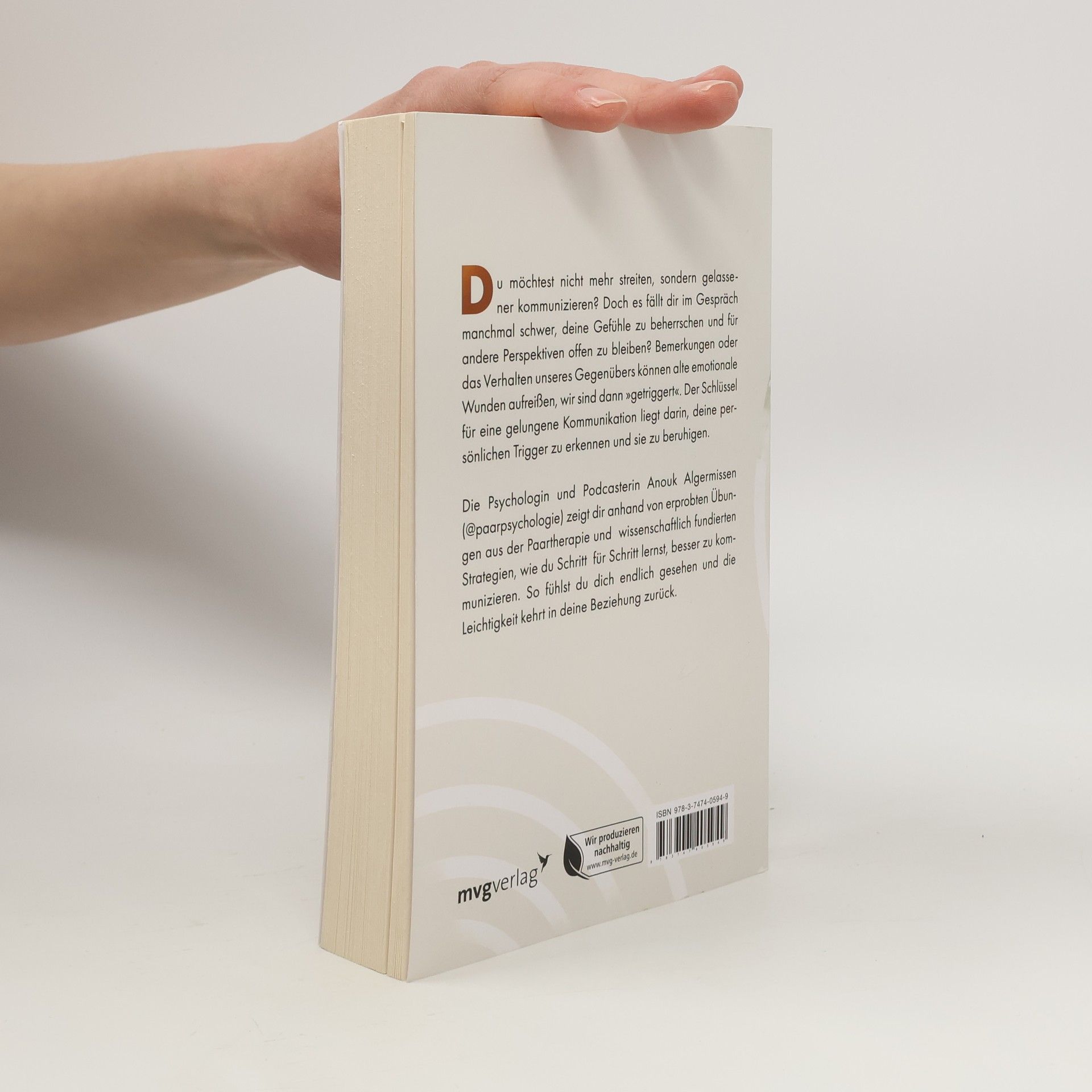 Tagtäglich kommunizieren wir mit anderen, doch häufig werden wir dabei zum Beispiel von Aussagen, Bemerkungen oder Anspielungen plötzlich stark gereizt, was man auch »getriggert« nennt. Dann leiden die Kommunikation und schließlich auch die Beziehung mit dem Gegenüber. Gängige Tipps helfen dabei oft nicht weiter, da sie nicht tief genug greifen. Denn eine gute Kommunikation setzt voraus, dass wir zuerst einen Zugang zu uns selbst finden und verstehen, wie wir ticken und was uns triggert. Die Psychologin und Paartherapeutin Anouk Algermissen, bekannt aus ihrem erfolgreichen Podcast »Paarpsychologie«, teilt in diesem Buch ihre Expertise und Erfahrungen aus ihrer Beratungspraxis. Anhand zahlreicher echter Beispiele zeigt sie, wie wir unsere eigenen Gefühle erkunden, unsere Emotionen regulieren und so die Basis für eine gelassene Kommunikation schaffen, die unsere Beziehungen dauerhaft stärkt.