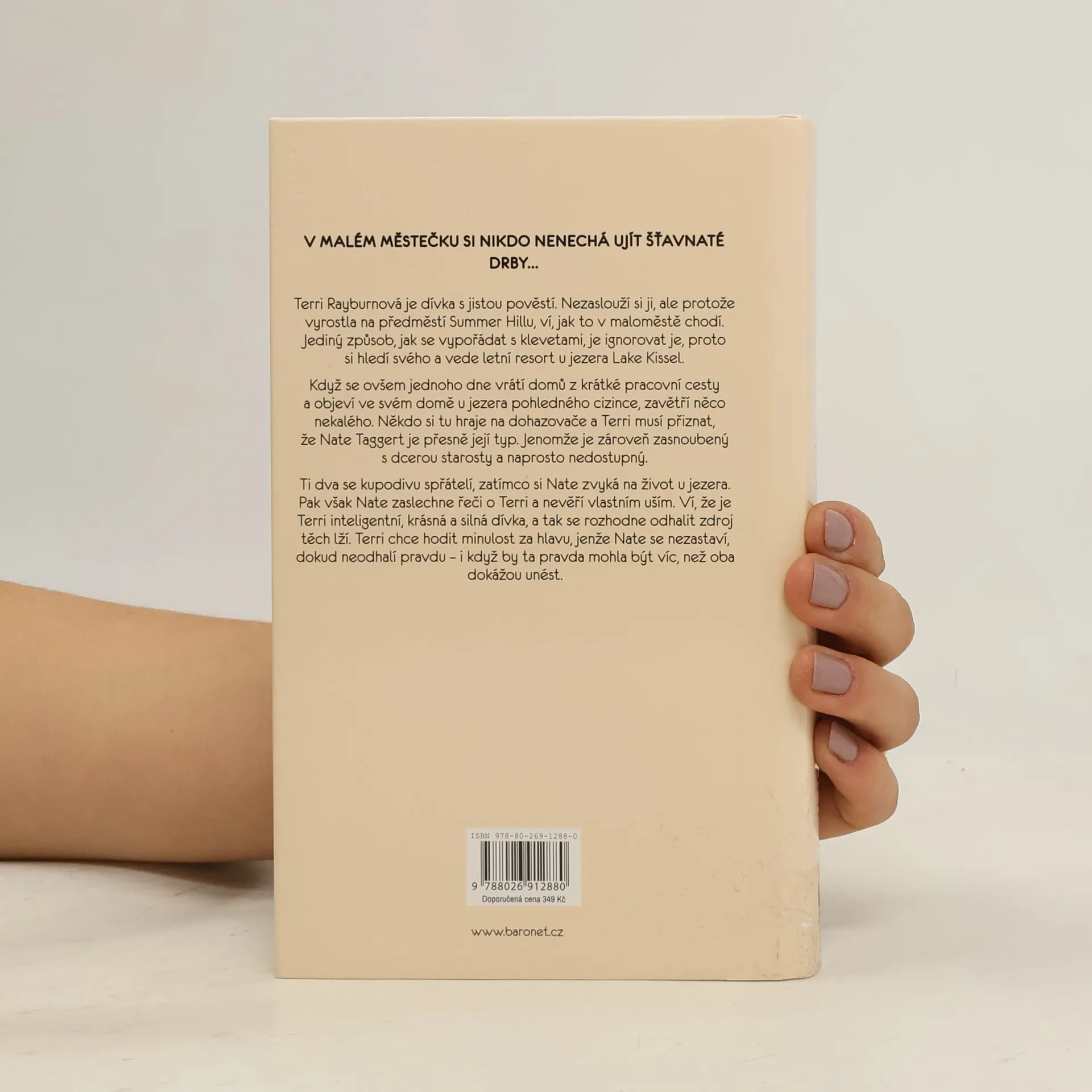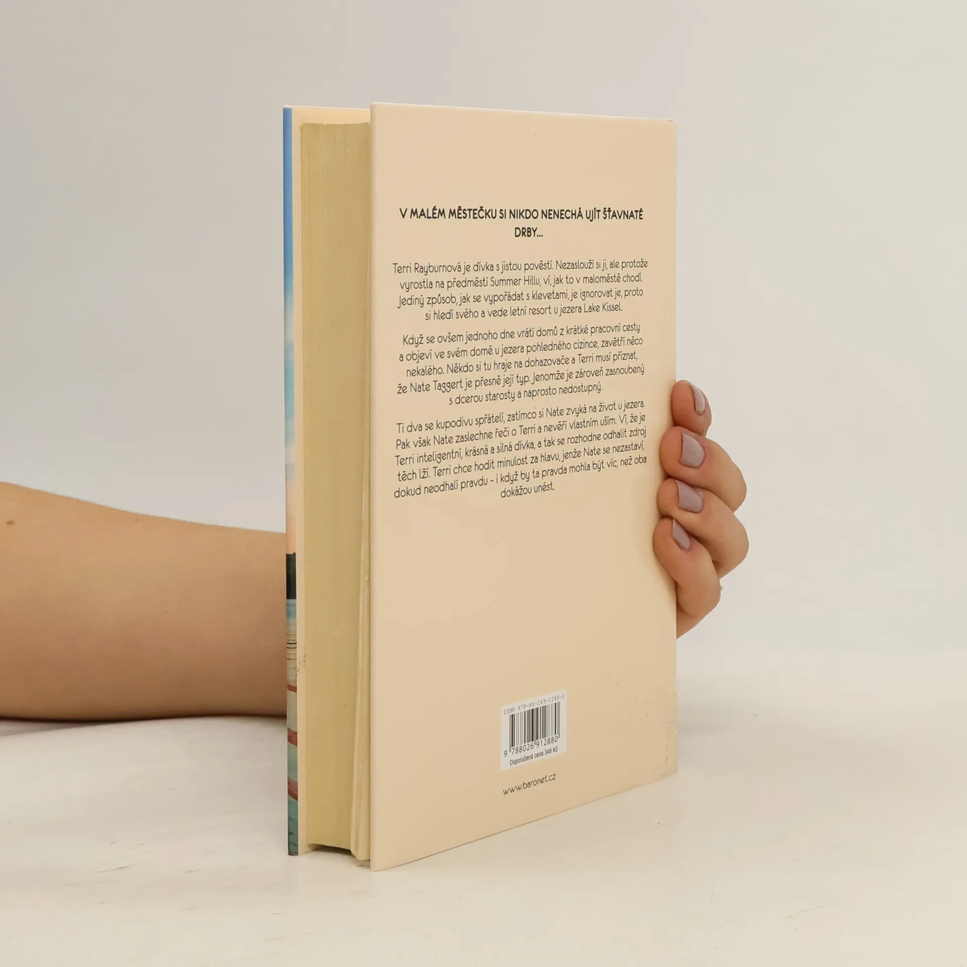 V malém městečku si nikdo nenechá ujít šťavnaté drby... Terri Rayburnová je dívka s jistou pověstí. Nezaslouží si ji, ale protože vyrostla na předměstí Summer Hillu, ví, jak to na maloměstě chodí. Jediný způsob, jak se vypořádat s klevetami, je ignorovat je. Takže si hledí svého a vede letní resort u jezera Lake Kissel. Když se ovšem jednoho dne vrátí domů z krátké pracovní cesty a objeví ve svém domě u jezera pohledného cizince, zavětří něco nekalého. Někdo si tu hraje na dohazovače a Terri musí přiznat, že Nate Taggert je přesně její typ. Jenomže je zároveň zasnoubený s dcerou starosty a naprosto nedostupný. Ti dva se kupodivu spřátelí, zatímco si Nate zvyká na život u jezera. Když však Nate zaslechne drby o Terri, je opravdu překvapený. Ví, že je Terri inteligentní, krásná a silná dívka, a tak se rozhodne odhalit zdroj těch pomluv. Terri chce hodit minulost za hlavu, jenže Nate se nezastaví, dokud neodhalí pravdu – i když by ta pravda mohla být víc, než oba dokážou unést.