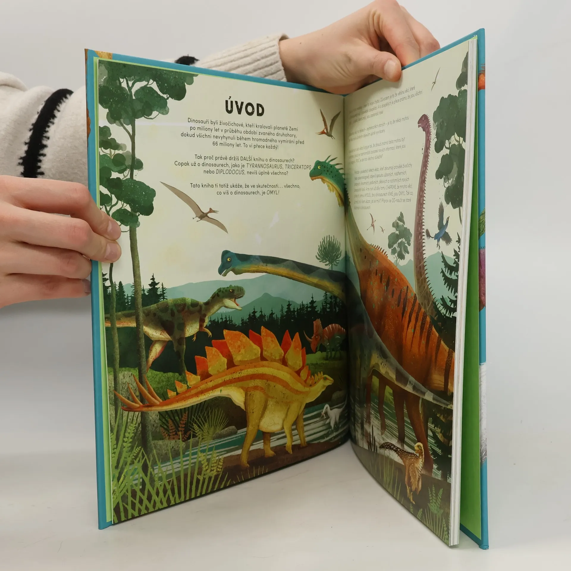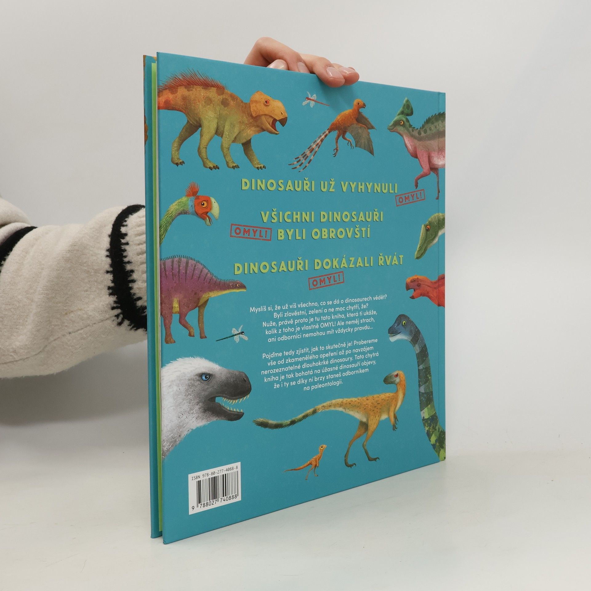Dinosauři už vyhynuli. Omyl! Všichni dinosauři byli obrovští. Omyl! Dinosauři dokázali řvát. Omyl! Myslíte si, že už víte všechno, co se dá o dinosaurech vědět? Byli zlověstní, zelení a ne moc chytří, že? Nuže, právě proto je tu tato kniha, která vám ukáže, kolik z toho je vlastně OMYL! Ale nemějte strach, ani odborníci nemohou mít vždycky pravdu… Pojďme tedy zjistit, jak to skutečně je! Probereme vše od zkamenělého opeření až po vzájemně nerozeznatelné dlouhokrké dinosaury. Tato chytrá kniha je tak bohatá na úžasné dinosauří objevy, že i vy se díky ní brzy stanete odborníky na paleontologii.