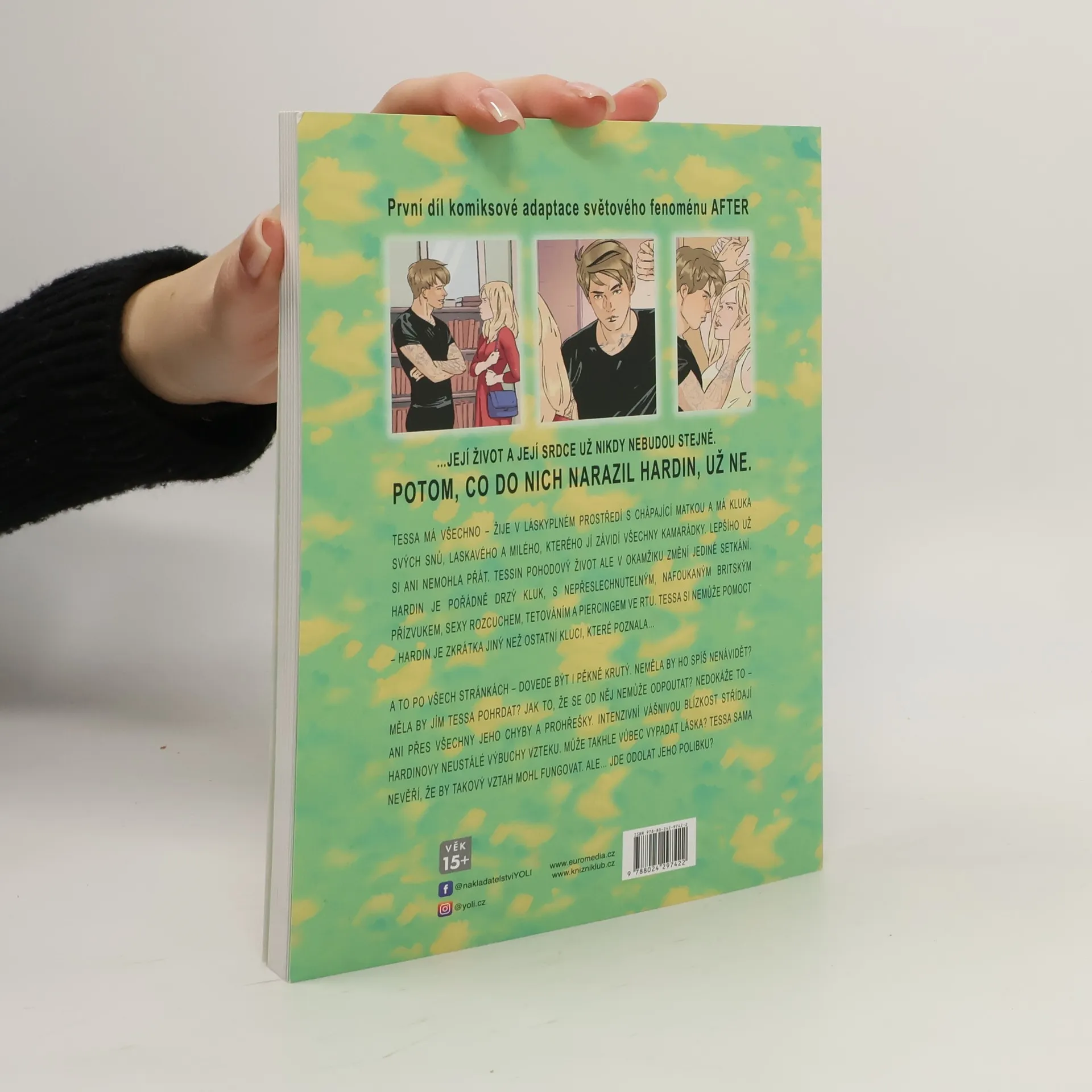 První díl komiksové adaptace světového fenoménu AFTER. Je na čase znovu se zamilovat! Tessa má všechno – žije v láskyplném prostředí s chápající matkou a má kluka svých snů, laskavého, milého, kterého jí závidí všechny kamarádky. Lepšího už si ani nemohla přát. Tessin pohodový život ale v okamžiku změní jediné setkání. Hardin je pořádně drzý kluk, s nepřeslechnutelným, nafoukaným britským akcentem, sexy rozcuchem, tetováním a piercingem ve rtu. Tessa si nemůže pomoct – Hardin je zkrátka jiný než ostatní kluci, které poznala… A to po všech stránkách – dovede být i pěkně krutý. Neměla by ho spíš nenávidět? Neměla by jím Tessa pohrdat? Jak to, že se od něj nemůže odpoutat? Nedokáže to – i přes všechny jeho chyby a prohřešky. Intenzivní vášnivou blízkost střídají neustálá Hardinova zmizení a výbuchy vzteku. Může takhle vůbec vypadat láska? Tessa sama nevěří, že by takový vztah mohl fungovat. Ale… jde odolat jeho polibku? Grafický román After by fanouškůn Anny Todd ve sbírce rozhodně neměl chybět! Doporučený věk 15+