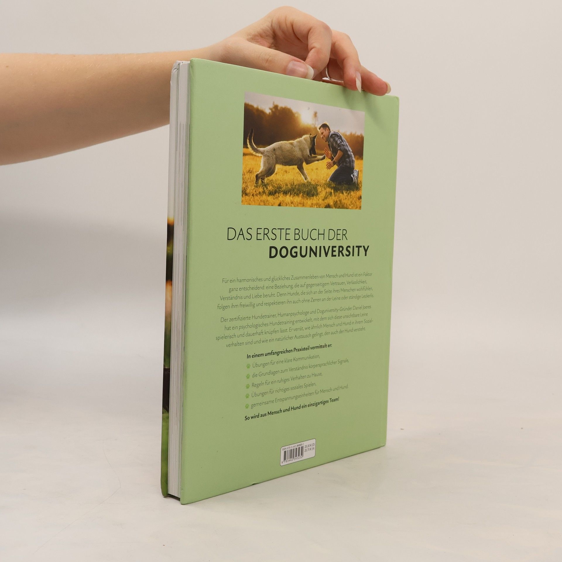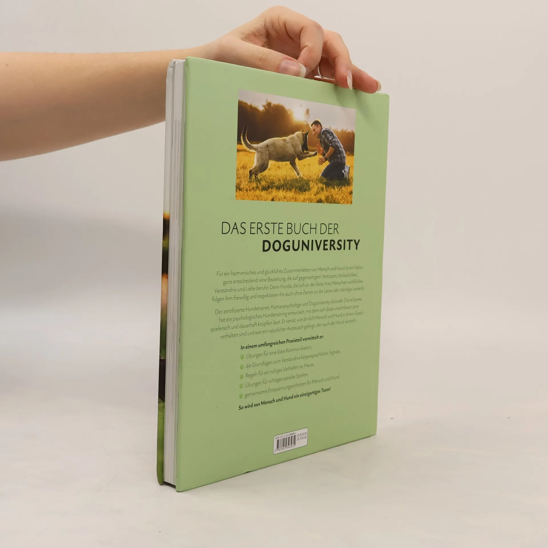 Das erste Buch der Doguniversity Für ein harmonisches und glückliches Zusammenleben von Mensch und Hund ist ein Faktor ganz entscheidend: eine Beziehung, die auf gegenseitigem Vertrauen, Verlässlichkeit, Verständnis und Liebe beruht. Denn Hunde, die sich an der Seite ihres Menschen wohlfühlen, folgen ihm freiwillig und respektieren ihn auch ohne Zerren an der Leine oder ständige Leckerlis. Der zertifizierte Hundetrainer, Humanpsychologe und Doguniversity-Gründer Daniel Joeres hat ein psychologisches Hundetraining entwickelt, mit dem sich diese unsichtbare Leine spielerisch und dauerhaft knüpfen lässt. Er verrät, wie ähnlich Mensch und Hund in ihrem Sozialverhalten sind, und wie ein natürlicher Austausch gelingt, den auch der Hund versteht. In einem umfangreichen Praxisteil vermittelt er: ● Übungen für eine klare Kommunikation, ● die Grundlagen zum Verständnis körpersprachlicher Signale, ● Beobachtungsübungen, ● warum stellvertretende soziale Konflikte so wichtig sind, ● Regeln für ein ruhiges Verhalten zu Hause, ● Übungen für richtiges soziales Spielen, ● Tipps, um Aufgaben zusammen zu lösen und ● gemeinsame Entspannungseinheiten für Mensch und Hund. So wird aus Mensch und Hund ein einzigartiges Team! Ausstattung: 4-farbig, Abbildungen