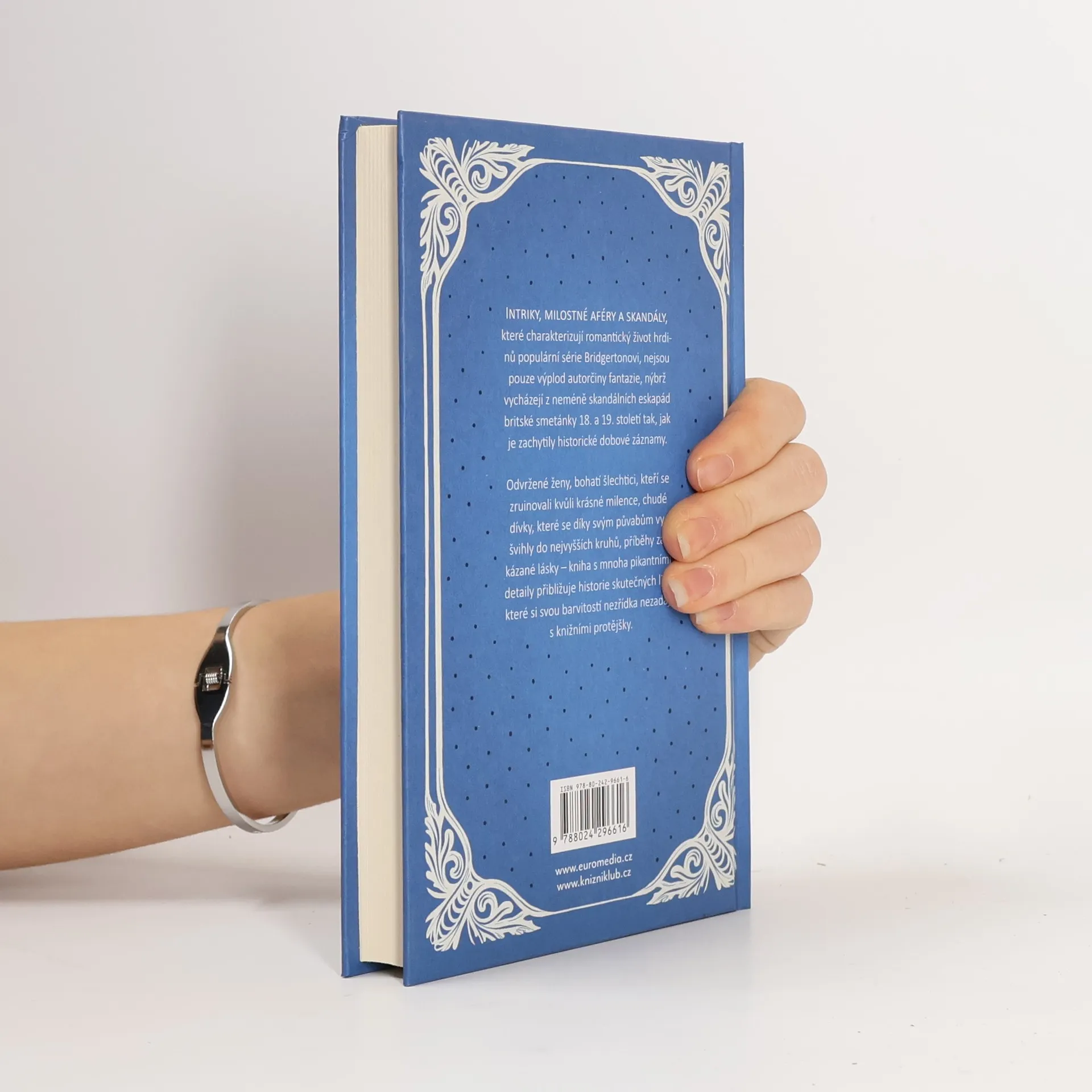 Intriky, milostné aféry a skandály, které charakterizují romantický život hrdinů populární série Bridgertonovi, nejsou pouze výplod autorčiny fantazie, nýbrž vycházejí z neméně skandálních eskapád britské smetánky 18. a 19. století tak, jak je zachytily historické dobové záznamy. Odvržené ženy, bohatí šlechtici, kteří se zruinovali kvůli krásné milence, chudé dívky, které se díky svým půvabům vyšvihly do nejvyšších kruhů, příběhy zakázané lásky – kniha s mnoha pikantními detaily přibližuje historie skutečných lidí, které si svou barvitostí nezřídka nezadají s knižními protějšky.