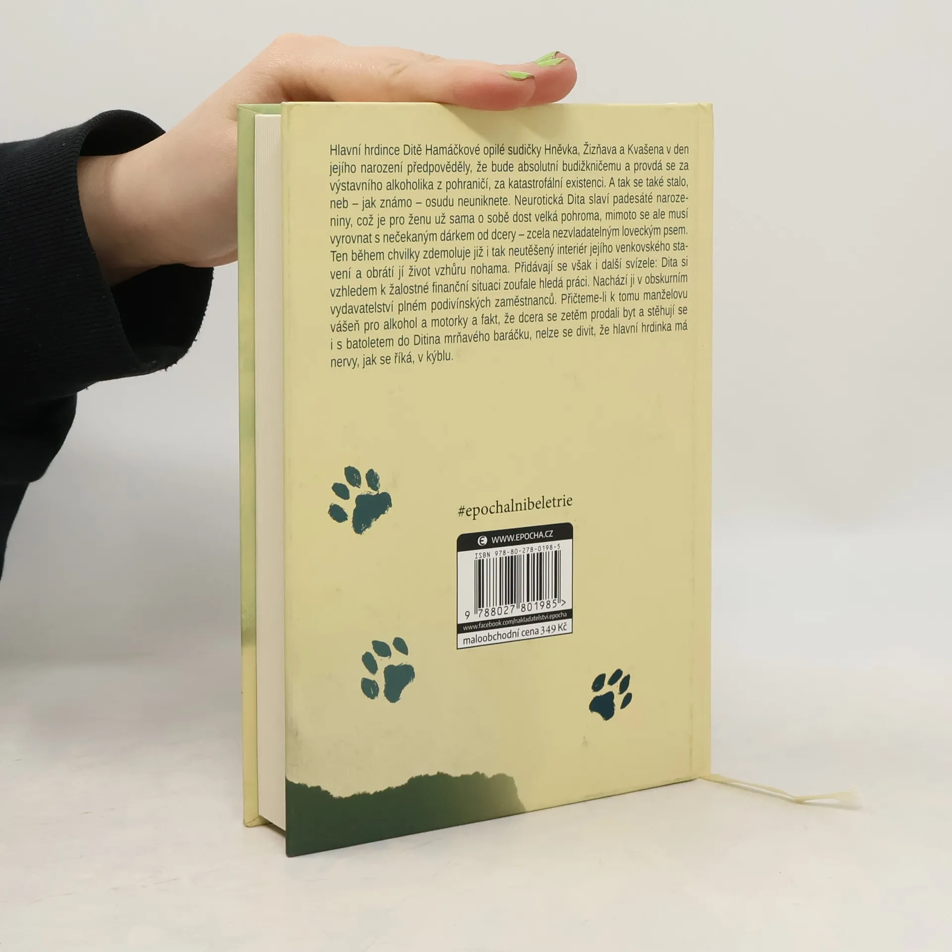 Hlavní hrdince Ditě Hamáčkové opilé sudičky Hněvka, Žizňava a Kvašena v den jejího narození předpověděly, že bude absolutní budižkničemu a provdá se za výstavního alkoholika z pohraničí, za katastrofální existenci. A tak se také stalo, neb – jak známo – osudu neuniknete. Neurotická Dita slaví padesáté narozeniny, což je pro ženu už sama o sobě dost velká pohroma, mimoto se ale musí vyrovnat s nečekaným dárkem od dcery – zcela nezvladatelným loveckým psem. Ten během chvilky zdemoluje již i tak neutěšený interiér jejího venkovského stavení a obrátí jí život vzhůru nohama. Přidávají se však i další svízele: Dita si vzhledem k žalostné finanční situaci zoufale hledá práci. Nachází ji v obskurním vydavatelství plném podivínských zaměstnanců. Přičteme- li k tomu manželovu vášeň pro alkohol a motorky a fakt, že dcera se zetěm prodali byt a stěhují se i s batoletem do Ditina mrňavého baráčku, nelze se divit, že hlavní hrdinka má nervy, jak se říká, v kýblu.