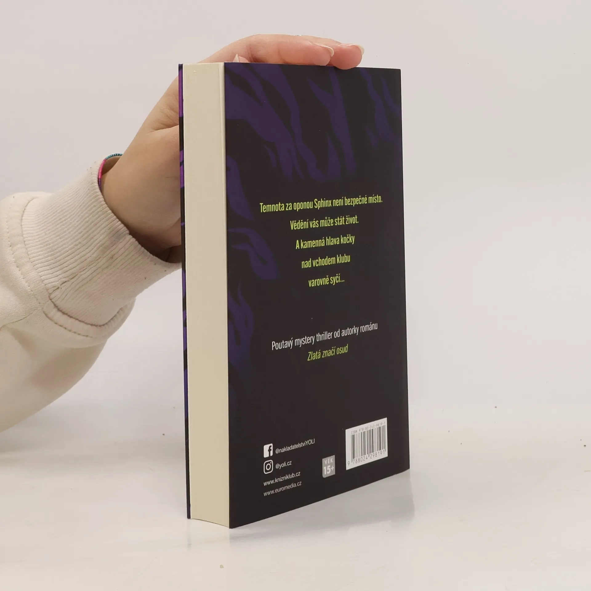 Spontánní návštěva luxusního strip klubu Sphinx pro Mikuláše nejdřív byla jen vtipem – kam jinam s kamarády zapadnout během nočního tahu městem, když vám v krvi koluje několik lítajících jelenů a obyčejné bary vás nudí? Když se seznámí s tamějším striptérem Adamem, věci naberou rychlý spád. Prvotní rozpačitá setkání se mění ve skutečné city a na okamžik se zdá, že před sebou mají růžovou budoucnost.Jenže s východem slunce vystupují temné stíny a Mikuláš poznává i prostředí, v němž se Adam pohybuje. V klubu se najde mrtvola, kterou podle všeho nikdo nikdy neměl objevit, a Adam cosi tají. Temnota za oponou Sphinx není bezpečné místo. Vědění vás může stát život. A kamenná hlava kočky nad vchodem klubu varovně syčí… Doporučený věk 15+