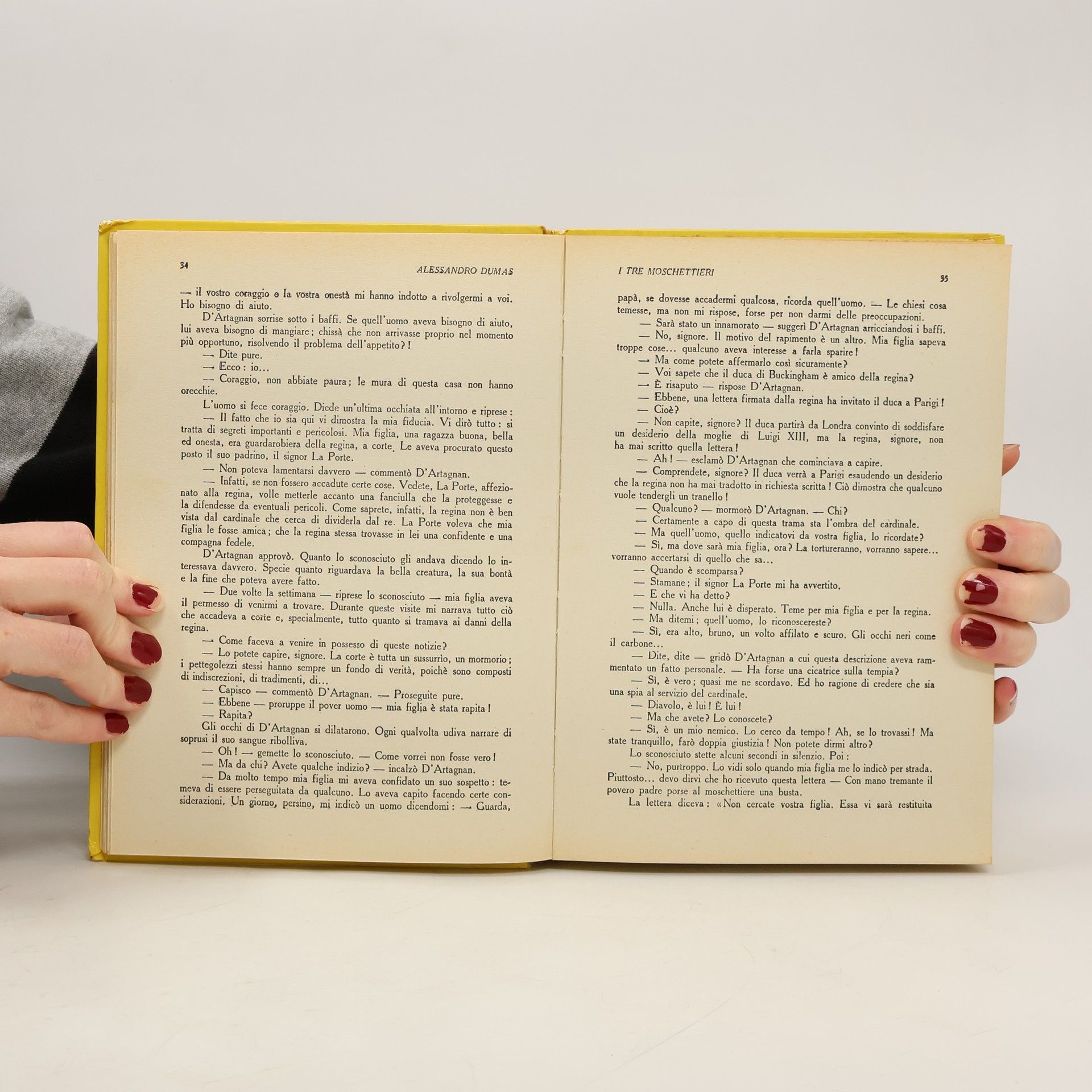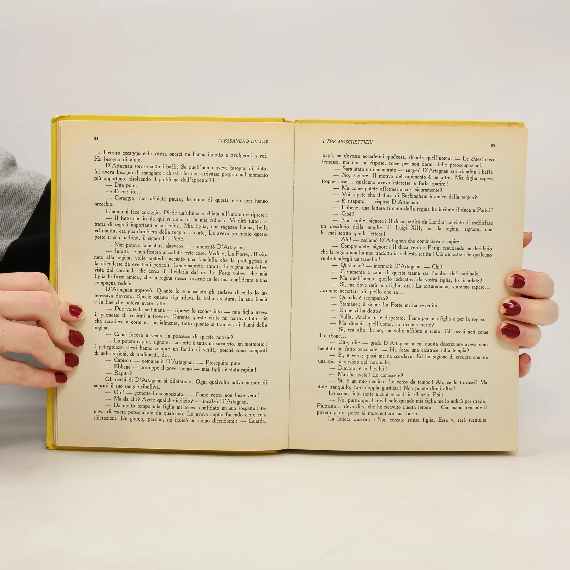 Beato colui che per la prima volta si accinge a inseguire le orme di d'Artagnan - beato colui che, avendo letto questo libro nell'adolescenza, come accade, in una edizione probabilmente ornata di traumatizzanti illustrazioni, non ne conserva che un confuso ricordo, fatto di generosi e un po' sciocchi duelli, di trame ingegnose, di agevoli uccisioni; attendono costoro alcune ore di indifesa, deliziata lettura... Una velocissima cavalcata, che si svolge con accelerazione sempre più nervosa e rovinosa, ci rapisce, per le strade di Francia e di Inghilterra, sulle tracce di d'Artagnan e dei tre moschettieri; in preda ad un batticuore lievemente degradante, gustando tutta la codarda letizia di essere 'fuori', noi seguiamo le ambagi di una storia seducente quanto sfrontatamente improbabile. Di rado siamo commossi, mai coinvolti, ma costantemente eccitati, provocati, elusi...