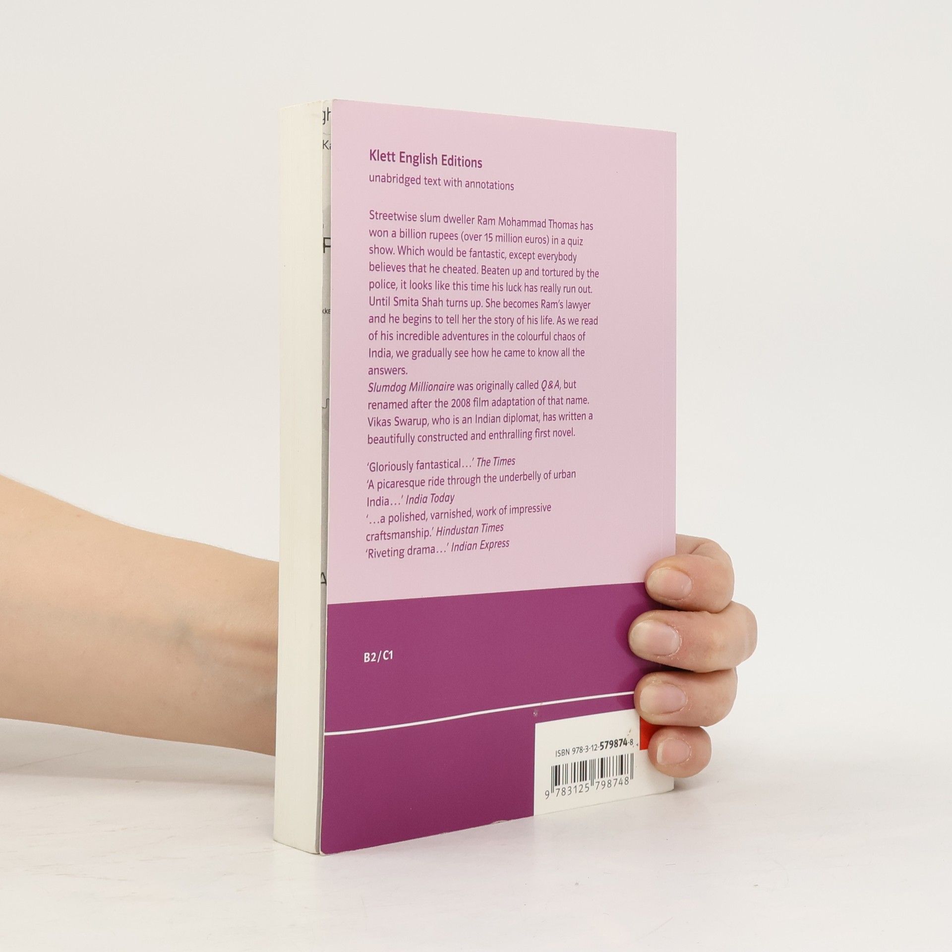 Ein Kellner gewinnt in der indischen Version von „Wer wird Millionär?“ eine Milliarde Rupien (15 Millionen Euro). Doch wie kann dies so einem gelingen? Einem, der gar keine Schulbildung hat? Die Polizei verhaftet ihn wegen Betrugs und versucht seine „Masche“ aus ihm herauszufoltern. Doch dann taucht Smita auf. Sie erklärt, sie sei seine Anwältin. Er erzählt ihr zu jeder Frage eine Geschichte aus seinem Leben, eine Geschichte, die begründet, warum er jede Frage korrekt beantworten konnte. Die Geschichten stehen zunächst unverbunden nebeneinander, Geschichten aus Indiens Slums, von denen, die nicht am indischen Technologie-Boom teilhaben. Brutale, traurige, aber oft auch witzige Geschichten, voller Leben, von Menschen, die immer wieder auf die Nase fallen und doch wieder aufstehen. Aber am Ende werden diese Geschichten von Swarup auf wunderbare Weise zusammengewebt. Abiturempfehlung zum Themenbereich India