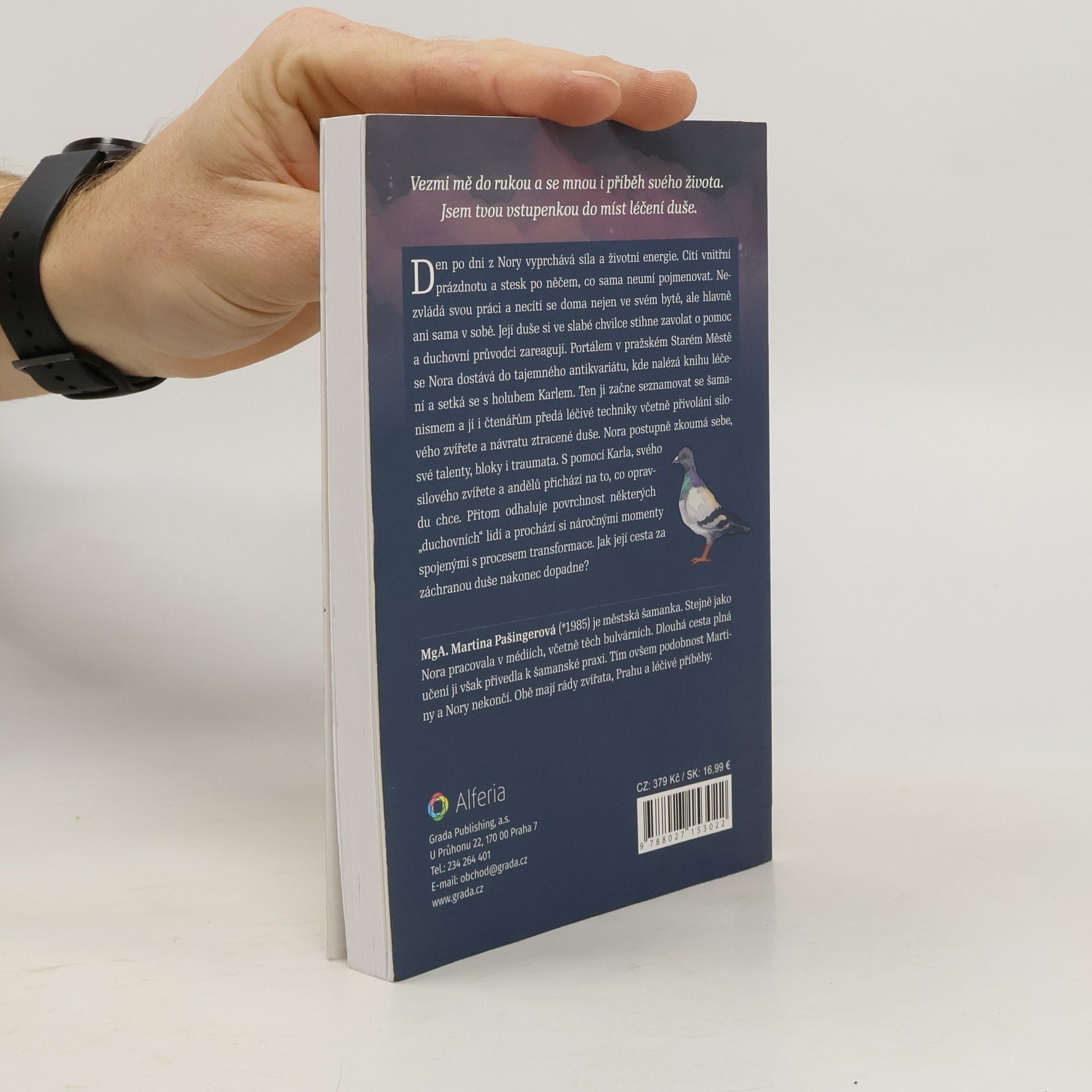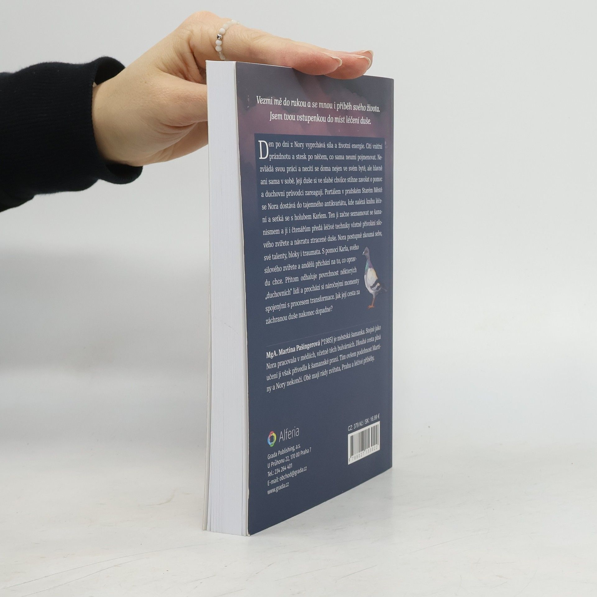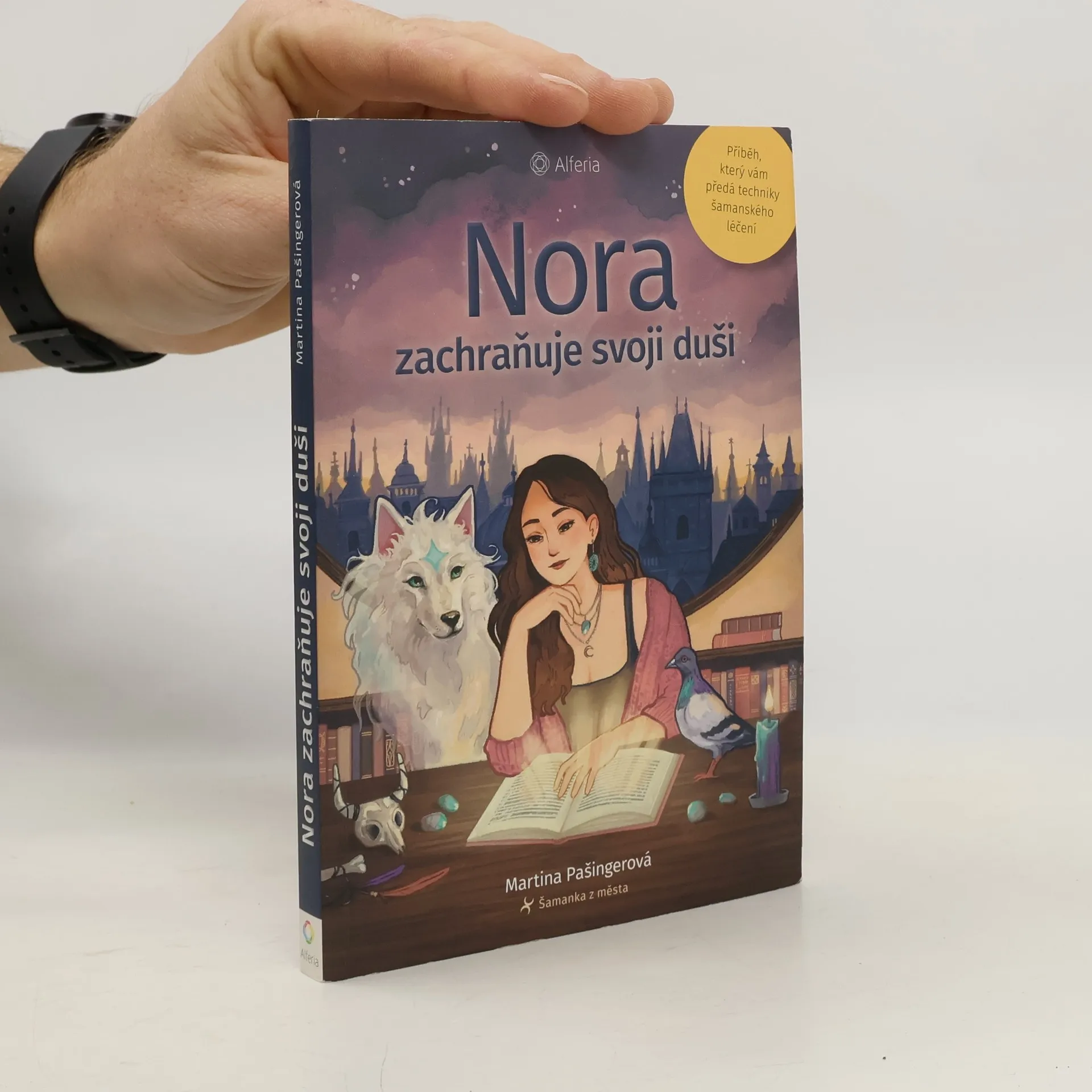 Den po dni z Nory vyprchává síla a životní energie. Cítí vnitřní prázdnotu a stesk po něčem, co sama neumí pojmenovat. Nezvládá svou práci a necítí se doma nejen ve svém bytě, ale hlavně ani sama v sobě. Její duše si ve slabé chvilce stihne zavolat o pomoc a duchovní průvodci zareagují. Portálem v pražském Starém Městě se Nora dostává do tajemného antikvariátu, kde nalézá knihu léčení a setká se s holubem Karlem. Ten ji začne seznamovat se šamanismem a jí i čtenářům předá léčivé techniky včetně přivolání silového zvířete a návratu ztracené duše. Nora postupně zkoumá sebe, své talenty, bloky i traumata. S pomocí Karla, svého silového zvířete a andělů postupuje cestou léčení a přichází na to, co opravdu chce. Přitom odhaluje povrchnost některých „duchovních“ lidí a prochází si náročnými momenty spojenými s procesem transformace. Jak její cesta za záchranou duše nakonec dopadne?