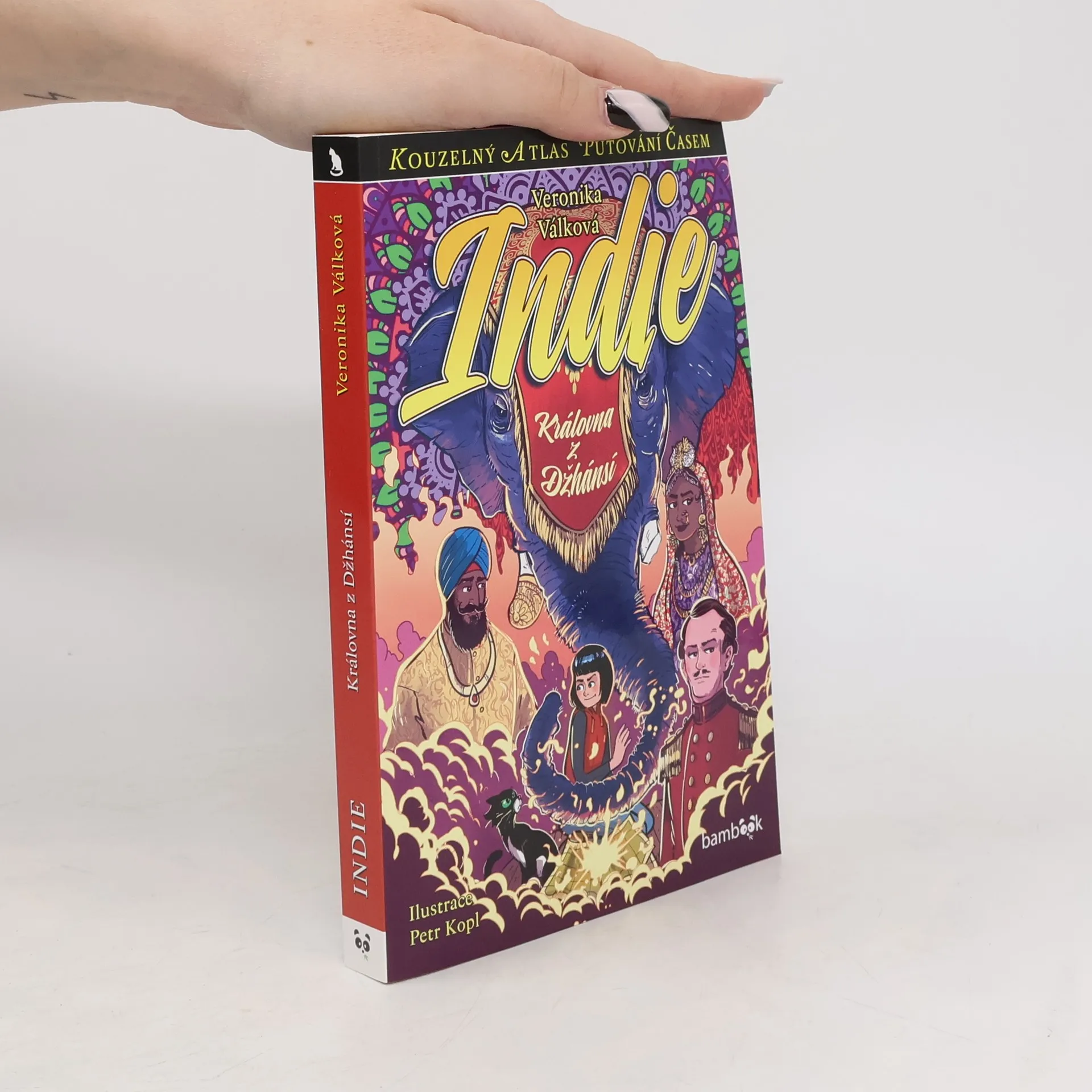 Kdo usiluje o zkázu královny z Džhánsí? Proč k tomu potřebuje uťatou Bářinu hlavu? Jak usvědčit spiklence? A kdo je učeň deseti mistrů? Jaké překvapení čeká v britském vojenském táboře – a jaké nebezpečí číhá v chrámu bohyně Kálí? Bára si ani ve snu nepředstavovala, že výprava do Indie v polovině 19. století bude takhle divoká. Inu, když vás atlas přenese do cizokrajné země v době, kdy tam probíhá povstání, o životu nebezpečné situace nouze nebude. Bára si alespoň splnila jeden sen – pohladit si živého slona. Historička Veronika Válková ve svých knihách přenáší čtenáře do skutečné, reálné historie, kde spolu s Bárou zažívají napínavé chvilky, zároveň se toho ale také hodně dozvědí.