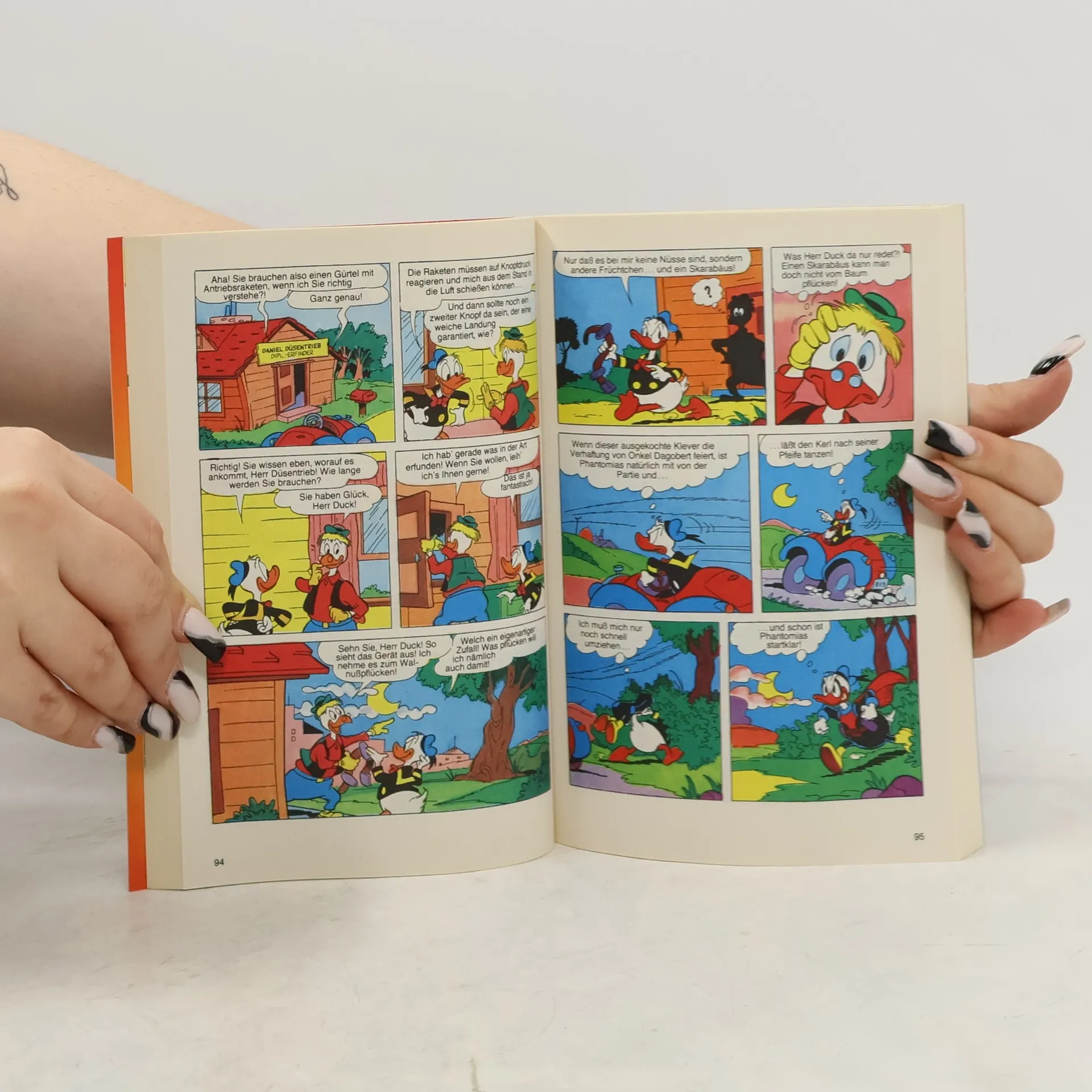 Man denkt ja manchmal, Phantomias müsse als Beschützer und Rächer ganz besonders diesseitig sein, um seinen doch oft recht skurrilen Superschurken-Gegnern mit dem angemessenen Realitäts-Check begegnen zu können. Das mag in und für Entenhausen auch absolut richtig sein, allerdings verschlägt es den Maskierten durchaus auch gelegentlich auf gänzlich andere Realitätsebenen, und das keineswegs nur umnebelten Geistes. Nein, kaum erhofft sich ein zerstreuter Zauberer von sehr weit anderswo mal heldenhafte Hilfe – zack, schon landet der Held in einem fernen Fantasie-Königreich! Und auch bei Zoff im Zwergenland ist Hilfe von der Gumpe gern gesehen. Irdische Zwerge sind derweil eher von Dagobert Ducks Gier in Form eines neuen Kinder-Kontos bedroht, aber auch hier greift Phantomias rettend ein – mithilfe des eihnachtsmannes. Unter den jungen Entenhausenern können sich erfahrungsgemäß die patenten Tick, Trick und Track am besten selbst helfen. Aber natürlich helfen die drei bei Bedarf auch gern einem von der Enttarnung bedrohten Helden(-Onkel) aus!