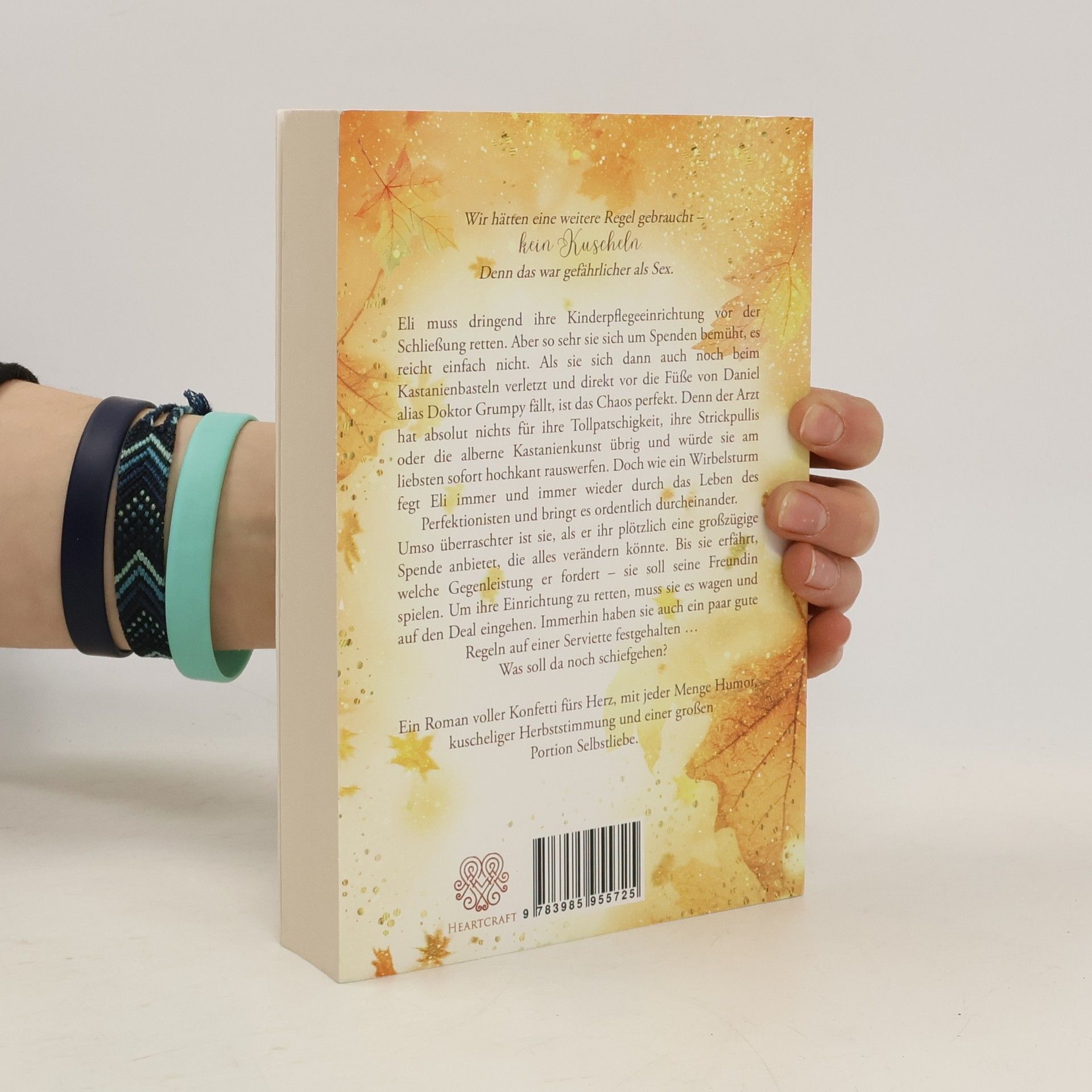 Wir hätten eine weitere Regel gebraucht – Kein Kuscheln. Denn das war gefährlicher als Sex. Eli muss dringend ihre Kinderpflegeeinrichtung vor der Schließung retten. Aber so sehr sie sich um Spenden bemüht, es reicht einfach nicht. Als sie sich dann auch noch beim Kastanienbasteln verletzt und direkt vor die Füße von Daniel alias Doktor Grumpy fällt, ist das Chaos perfekt. Denn der Arzt hat absolut nichts für ihre Tollpatschigkeit, ihre Strickpullis oder die alberne Kastanienkunst übrig und würde sie am liebsten sofort hochkant rauswerfen. Doch wie ein Wirbelsturm fegt Eli immer und immer wieder durch das Leben des Perfektionisten und bringt es ordentlich durcheinander. Umso überraschter ist sie, als er ihr plötzlich eine großzügige Spende anbietet, die alles verändern könnte. Bis sie erfährt, welche Gegenleistung er fordert – sie soll seine Freundin spielen. Um ihre Einrichtung zu retten, muss sie es wagen und auf den Deal eingehen. Immerhin haben sie auch ein paar gute Regeln auf einer Serviette festgehalten … Was soll da noch schiefgehen? Ein Roman voller Konfetti fürs Herz, mit jeder Menge Humor, kuscheliger Herbststimmung und einer großen Portion Selbstliebe.