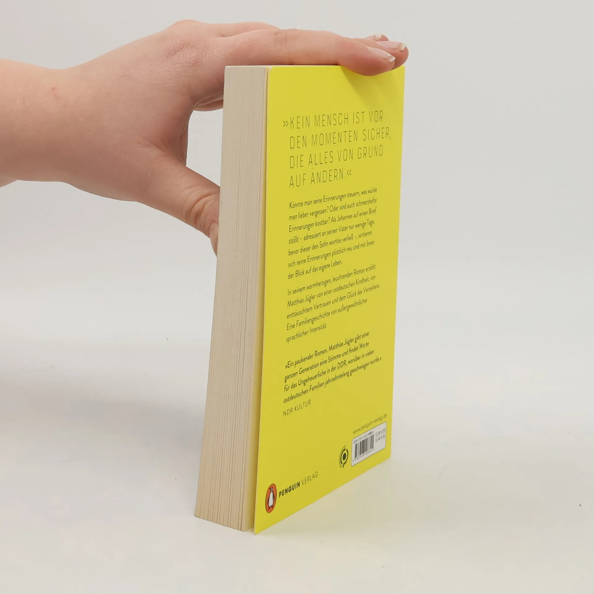 Kein Mensch ist vor den Momenten sicher, die alles von Grund auf ändern Johannes blickt zurück auf eine ostdeutsche Kindheit, die von feinen Rissen durchzogen war. Der frühe Tod seiner Mutter, das rätselhafte Verschwinden seines Vaters. All seine Fragen dazu blieben unbeantwortet, weshalb er noch als Erwachsener vorsichtig tastend durchs Leben geht. Als Johannes in einer alten Kiste auf einen Brief stößt, verändert dieser Fund nicht nur seine Zukunft, sondern vor allem seine Vergangenheit als Kind der Vorwende-DDR. Seine Erinnerungen sortieren sich neu und mit ihnen sein Blick auf das eigene Leben. In eindringlicher Dichte und mit kraftvoller Klarheit erzählt Matthias Jügler von Verlust und Verrat, vom Wert des Erinnerns und den drängenden Fragen einer ganzen Generation. Ein warmherziger, leuchtender Roman von außergewöhnlicher sprachlicher Intensität. »›Die Verlassenen‹ erscheint als ein berückendes, als ein tiefschwarzes Zeugnis ostdeutscher Erinnerungskultur und darin als eines der besten Bücher dieses Literaturfrühlings.« Deutschlandfunk, Büchermarkt, Jan Drees