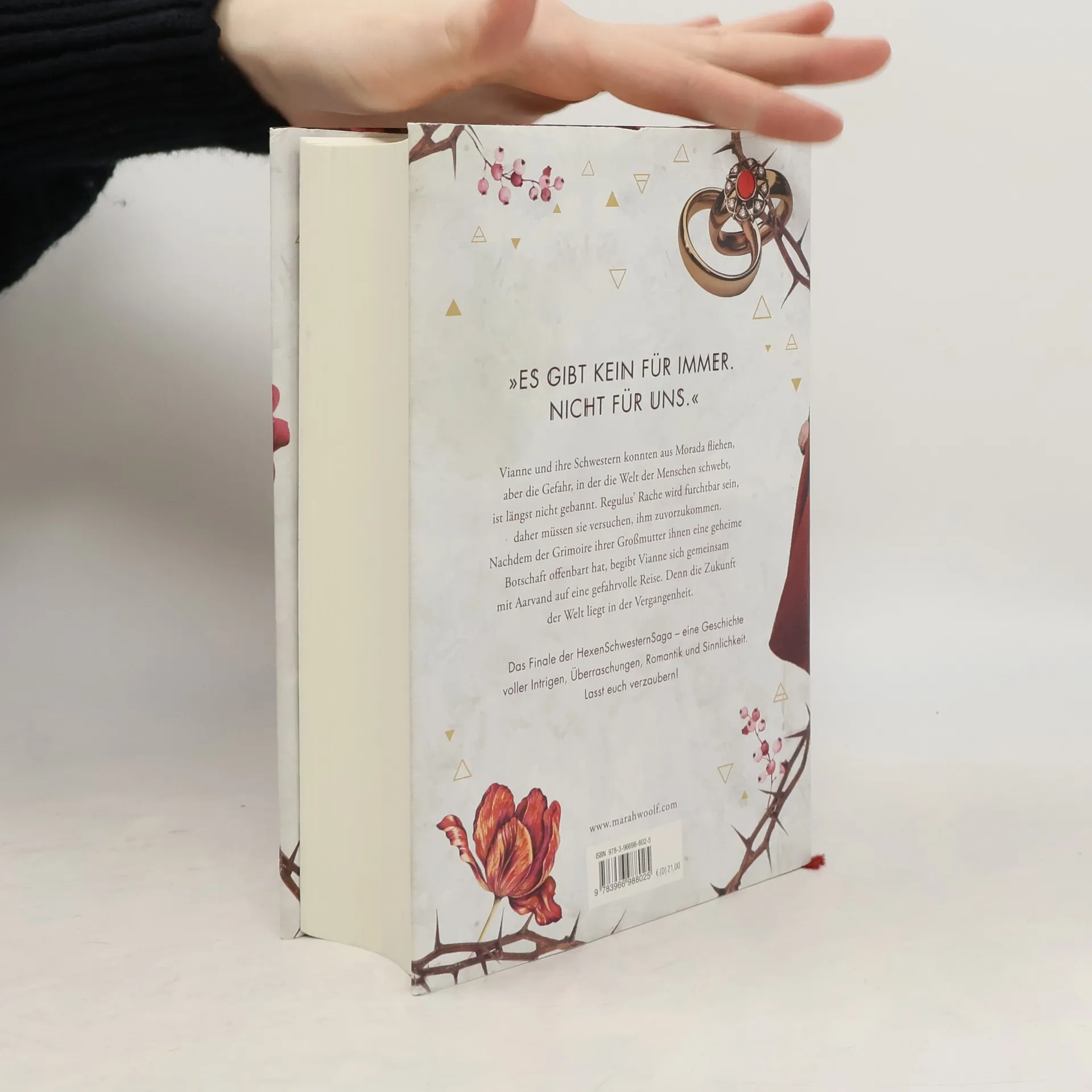 Intrigen, Überraschungen, Romantik und Sinnlichkeit … Vianne und ihre Schwestern konnten aus Morada fliehen, aber die Gefahr, in der die Welt der Menschen schwebt, ist längst nicht gebannt. Regulus’ Rache wird furchtbar sein, daher müssen sie versuchen, ihn aufzuhalten. Nachdem der Grimoire ihrer Großmutter ihnen eine geheime Botschaft offenbart hat, begibt Vianne sich auf eine gefahrvolle Reise. Denn um die Zukunft der Welt zu retten, muss sie in die Vergangenheit gehen. Das Finale der HexenSchwesternSaga!