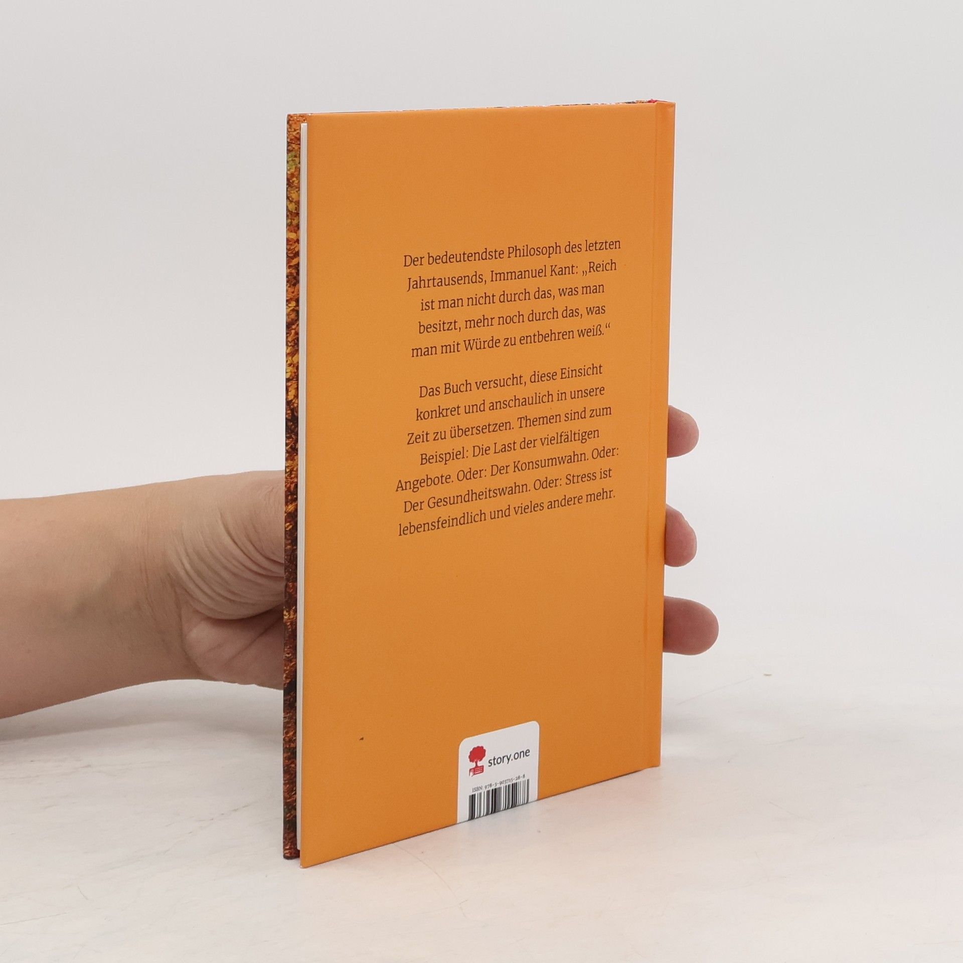 Der bedeutendste Philosoph des letzten Jahrtausends, Immanuel "Reich ist man nicht durch das, was man besitzt, mehr noch durch das, was man mit Würde zu entbehren weiß." Das Buch versucht, diese Einsicht konkret und anschaulich in unsere Zeit zu übersetzen. Themen sind zum Die Last der vielfältigen Angebote. Der Konsumwahn. Der Gesundheitswahn. Stress ist lebensfeindlich und vieles andere mehr."Es könnte sein, dass die Menschheit reicher wird, indem sie ärmer wird und gewinnt, indem sie verliert."Uwe Böschemeyer