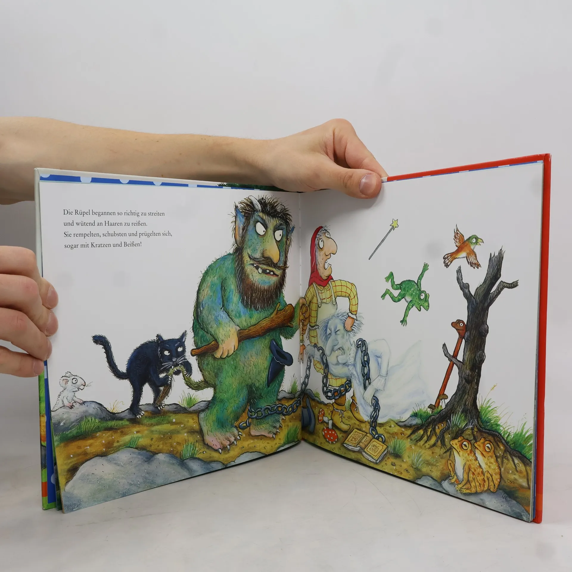 Der Troll, der Geist und die Hexe sind üble Rüpel. Sie haben nichts anderes im Sinn, als Angst und Schrecken zu verbreiten. Und können es kaum abwarten, das Mädchen, das in dem Haus im Wald wohnt, das Fürchten zu lehren. Allerdings haben sich die drei gewaltig verrechnet, denn das Mädchen dreht den Spieß um. Und so müssen selbst sie einsehen: Mut ist keine Frage der Größe und Bösewichte können nicht immer gewinnen. Ein wunderbar komisches Bilderbuch von den Schöpfern des »Grüffelo«. Axel Scheffler verwandelt die witzigen Verse von Julia Donaldson in eine bunte Märchenlandschaft mit einer einmalig trolligen Rüpelbande und einem ganz schön gewitzten Mädchen.