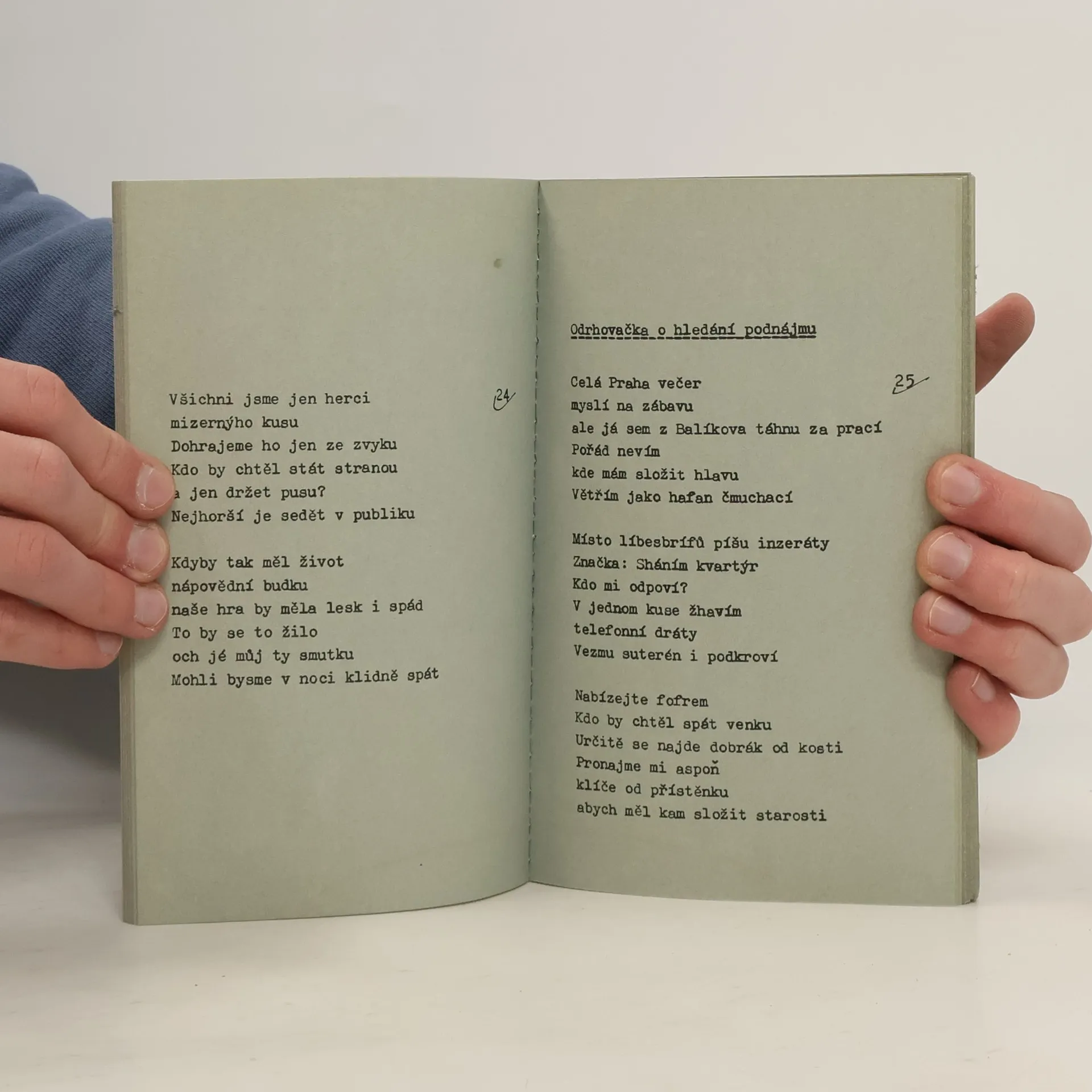 Popěvky, odrhovačky a blues 1973-1984. Ve sbírce zpěvných rýmovaných veršů dotýká se autor s úsměvem a ironií lyriky manželské i nemanželské, ztroskotání i dobrodružství poezie, míjení času a s vážností se zastavuje u ožehavé problematiky světového dění a otázek života a smrti. Doslov napsal Ladislav Verecký.
