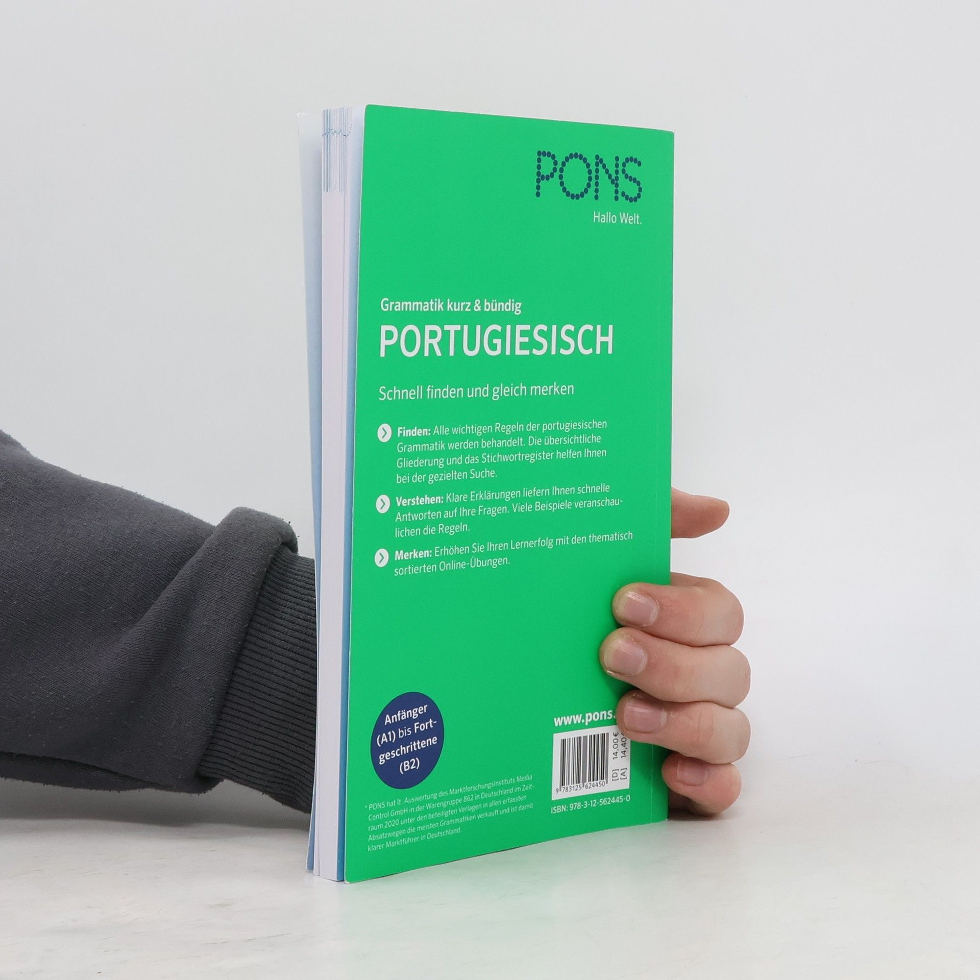 Portugiesische Grammatik: Schnell finden und gleich merken Finden: Alle wichtigen Regeln der portugiesischen Grammatik werden behandelt. Die übersichtliche Gliederung und das Stichwortregister helfen Ihnen bei der gezielten Suche. Verstehen: Klare Erklärungen liefern Ihnen schnelle Antworten auf Ihre Fragen. Viele Beispiele veranschaulichen die Regeln. Merken: Erhöhen Sie Ihren Lernerfolg mit den thematisch sortierten Online-Übungen. Für Anfänger (A1) bis Fortgeschrittene (B2)