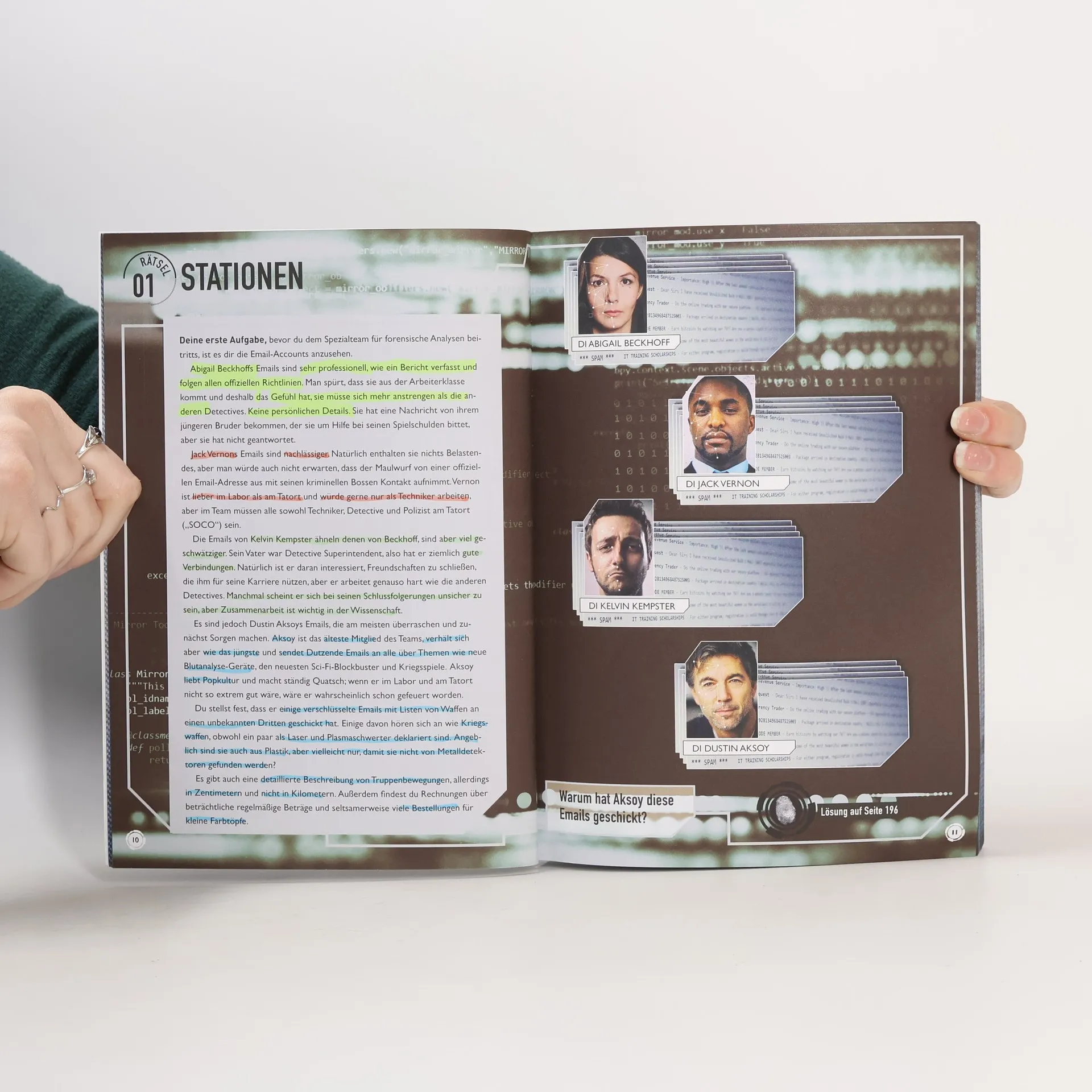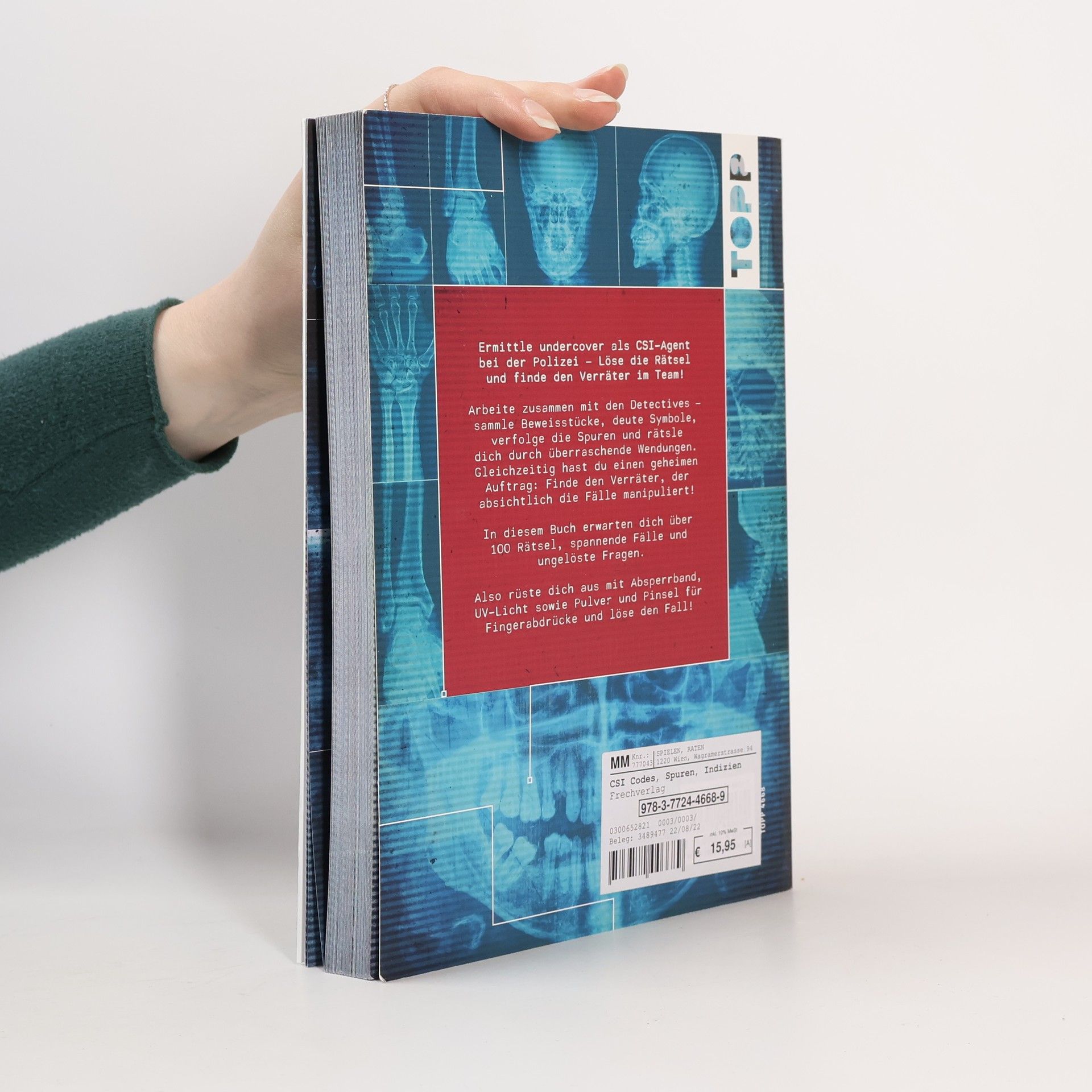 In diesem innovativen Rätselbuch schlüpfst du in die Rolle eines CSI-Agenten und hilfst dem Team, grausame Mordfälle, Raub und Betrug aufzuklären! Du sammelst Beweismaterial und rätselst dich dabei einmal quer durch das forensische Labor. Zeitgleich verfolgst du einen geheimen Auftrag: Entlarve und überführe den Polizisten, der auf der Polizeistation ein falsches Spiel spielt! Über 100 herausfordernde Krimi-Rätsel warten darauf, von dir gelöst zu werden – also schnapp dir deine Ausrüstung und begib dich auf die Spurensuche!