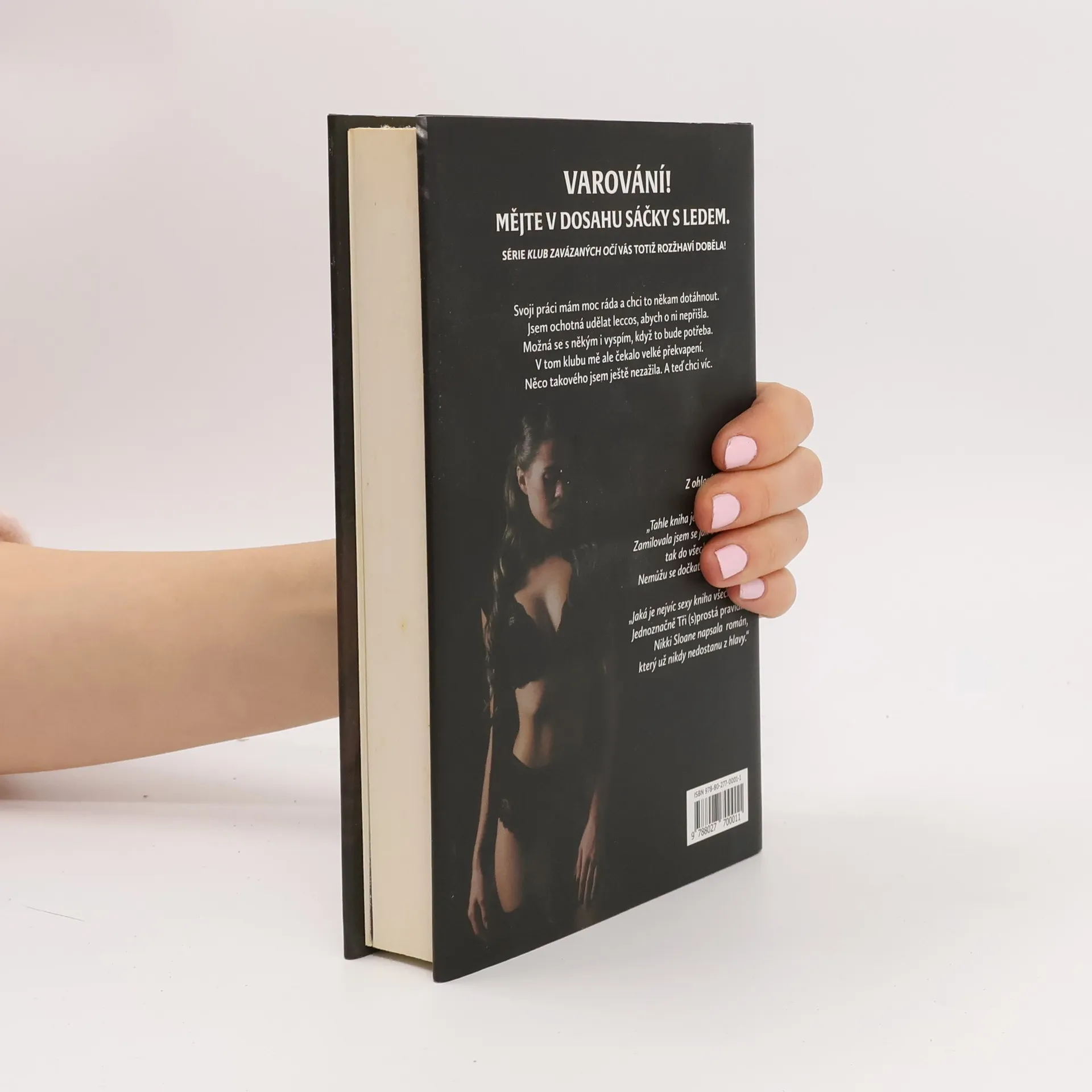 Pro svoji vysněnou práci bych udělala cokoli. A teď musím. Abych si zachránila kůži v kanceláři, musím prodat své tělo v exkluzivním klubu se zavázanýma očima. Zaplatil tisíce dolarů, abych mu na jednu noc patřila, ale když mi sundá pásku z očí, chci víc. Víc nocí, víc pravidel a mnohem víc tohoto nedosažitelného a nekompromisního muže. Pravidlo číslo jedna, žádné otázky. Pravidlo číslo dvě, žádné lži. Ale pravidlo číslo tři? To je vůbec to nejtěžší. Příběh plný žhavých scén, rostoucí velké lásky i vtipného nadhledu na vztahy mezi ženami a muži, taková je první kniha se série Blindfold club.