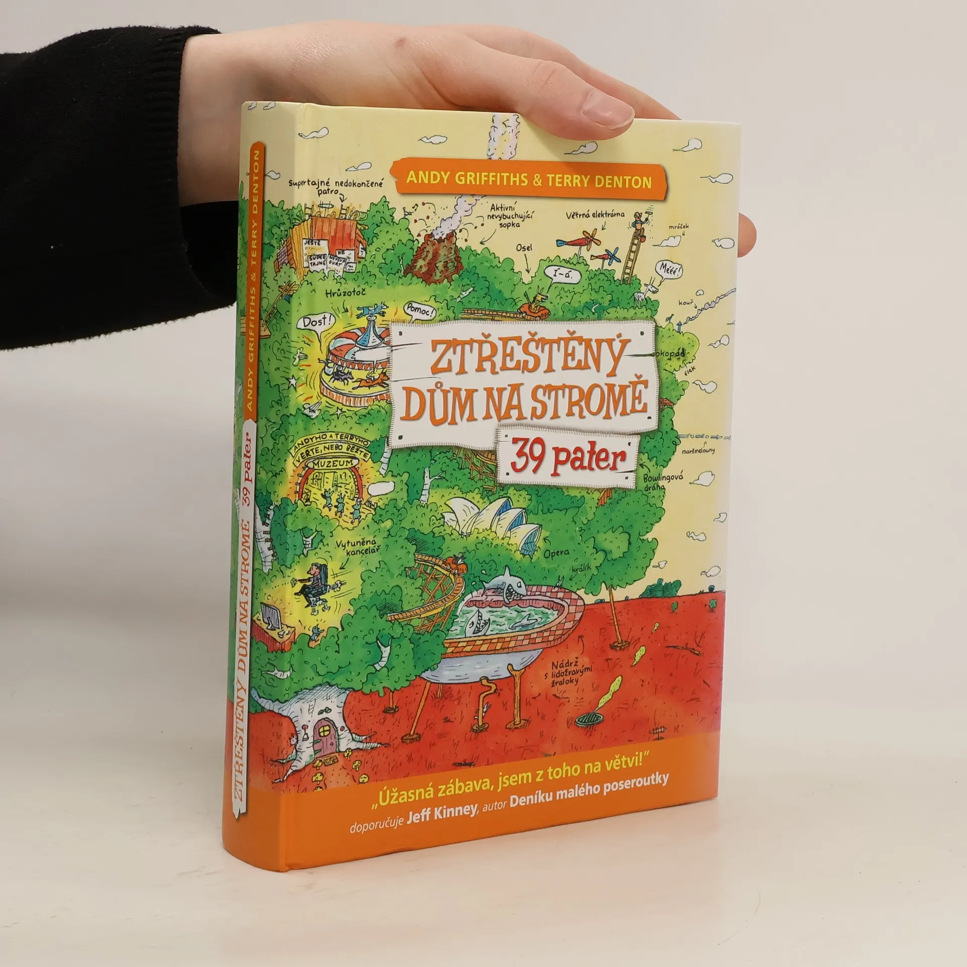 Pojďte se s námi podívat za Andym a Terrym do jejich nově rozšířeného devětatřicetipatrového domu na stromě! Čeká vás 13 zbrusu nových, akčních poschodí. Najdete tu například nejděsivější horskou dráhu na světě, operní dům, buldozerové bitevní pole, diskotéku se světelnou podlahou a obří disko-koulí, arénu s boxovacím slonem, který si říká Troubinátor, špičkově vybavenou kancelář s opakovacími poloautomatickými sešívačkami, laserovými gumami a katapultovacími kancelářskými křesly. Tak na co čekáte? Čtěte!