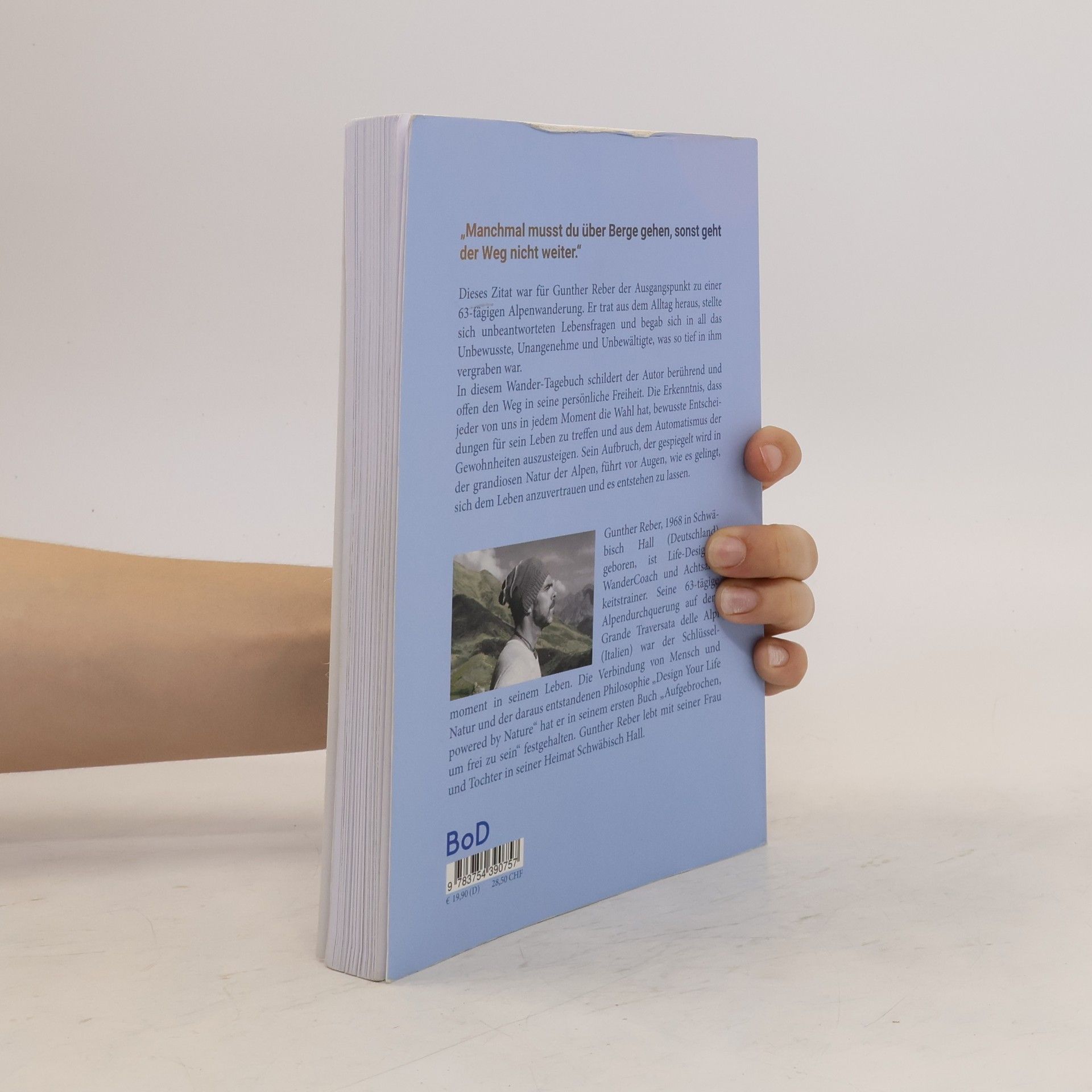 „Manchmal musst du über Berge gehen, sonst geht der Weg nicht weiter.“ Ein Zitat, das Gunther Reber auf die Reise geschickt hat, um auf einer 63-tägigen Alpenwanderung seine eigenen Berge zu durchqueren. Er trat aus dem Alltag heraus, stellte sich den unbeantworteten Lebensfragen und begab sich in das Unbewusste, Unangenehme und Unbewältigte, was so tief in ihm vergraben war. Mit seiner berührenden und offenen Art beschreibt er detailliert den Weg in seine persönliche Freiheit. Eine Freiheit, die ihm eine Wahl ermöglicht in jedem Moment bewusste Entscheidungen für sein Leben zu treffen und aus dem Automatismus der Gewohnheit auszusteigen. Ein Aufbruch den ihm die Natur spiegelt – sich dem Leben anzuvertrauen und es entstehen zu lassen.