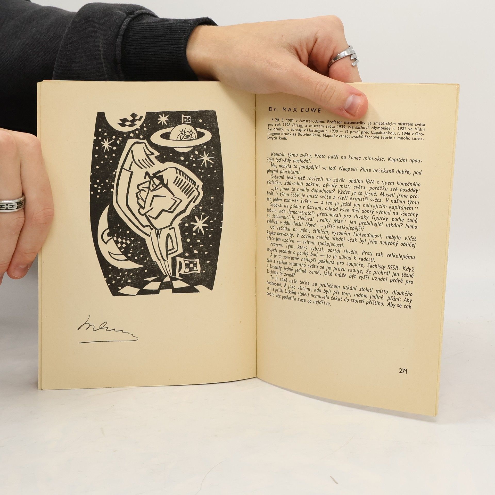 Československý šachista a novinář popisuje v první části turnaj kandidátů MS v r. 1971 a souboj šachového mistra světa Borise Spasského s americkým velmistrem Robertem Fischerem, který se konal za velké pozornosti světové veřejnosti v islandském Reykjaviku. Druhá část, komentující Utkání století v Bělehradě, v němž nastoupili šachisté Sovětského svazu proti světovým velmistrům, je přetiskem samostatné publikace, která po svém vyjití v r. 1971 byla okamžitě rozebrána. Kap. Jedenáct mistrů světa naps. Jaroslav Šajtar. Předml., doslov a il. Otakar Mašek.