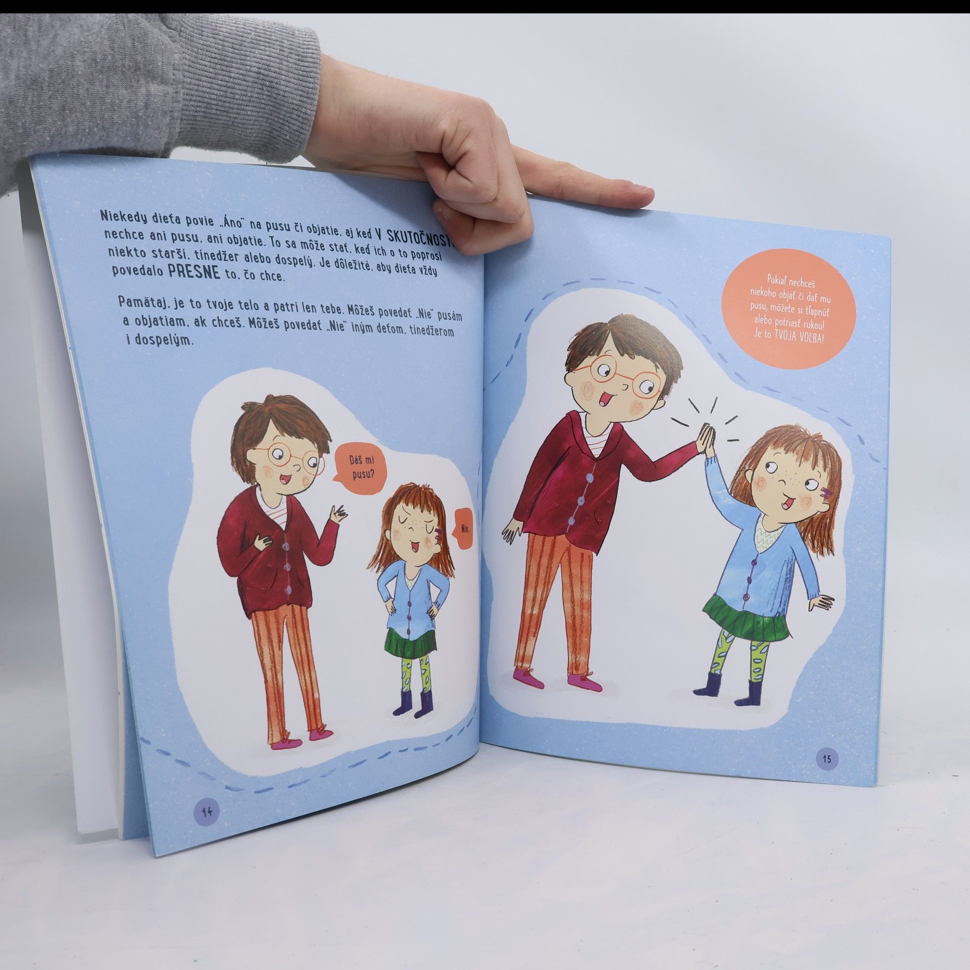 Učiť malé deti o telesných hraniciach, vlastných aj cudzích, má zásadný význam na rast ich sebavedomia či sebadôvery, ako aj ich očakávania, ako by sa k nim mali správať ostatní. Autorka vysvetľuje deťom tieto pojmy zrozumiteľným a prístupným spôsobom na situáciách, ktoré už poznajú z bežného života. Deti pri čítaní aktívne zapája do diskusie. Pre rodičov, opatrovateľov a pedagógov sú pripravené doplňujúce otázky na prehĺbenie debaty o téme. Kniha je určená deťom vo veku od 4 do 9 rokov.