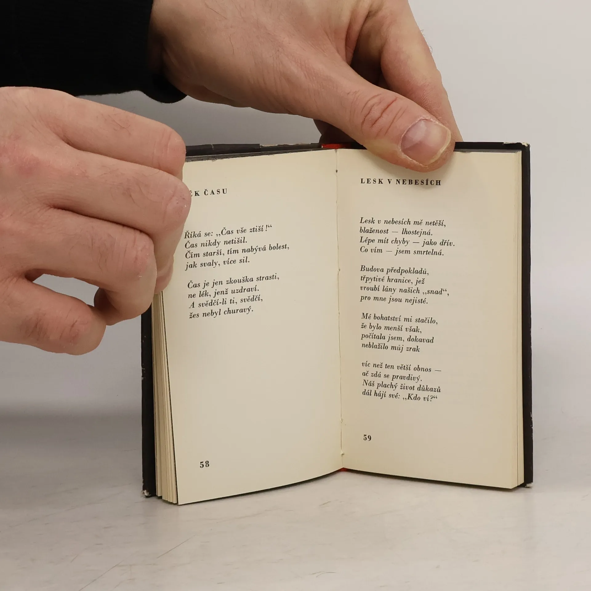 Verše Emily Dickinsonové z anglických originálů vybral, přeložil a doslovem opatřil Jiří Šlédr. Výbor z veršů americké básnířky, jejíž dílo kritika nejprve neuznala za poezii vůbec a nakonec je klasifikovala jako jeden z jejích vrcholů. Hutné meditativní verše, které předběhly vývoj poezie o desítky let a které je možno číst jako básnické dílo našeho současníka. Verše, jejichž obrazy nečekaně spojují protikladné oblasti: psychologii a mystiku s prací v domácnosti, hlubokou duchovní lásku s módou a peněžnictvím, náboženství a přírodu s vědou a technikou. Poezie, která vyznává živelnou lásku k světu a k životu a která hlásá životní odvahu hraničící až s hazardérstvím.