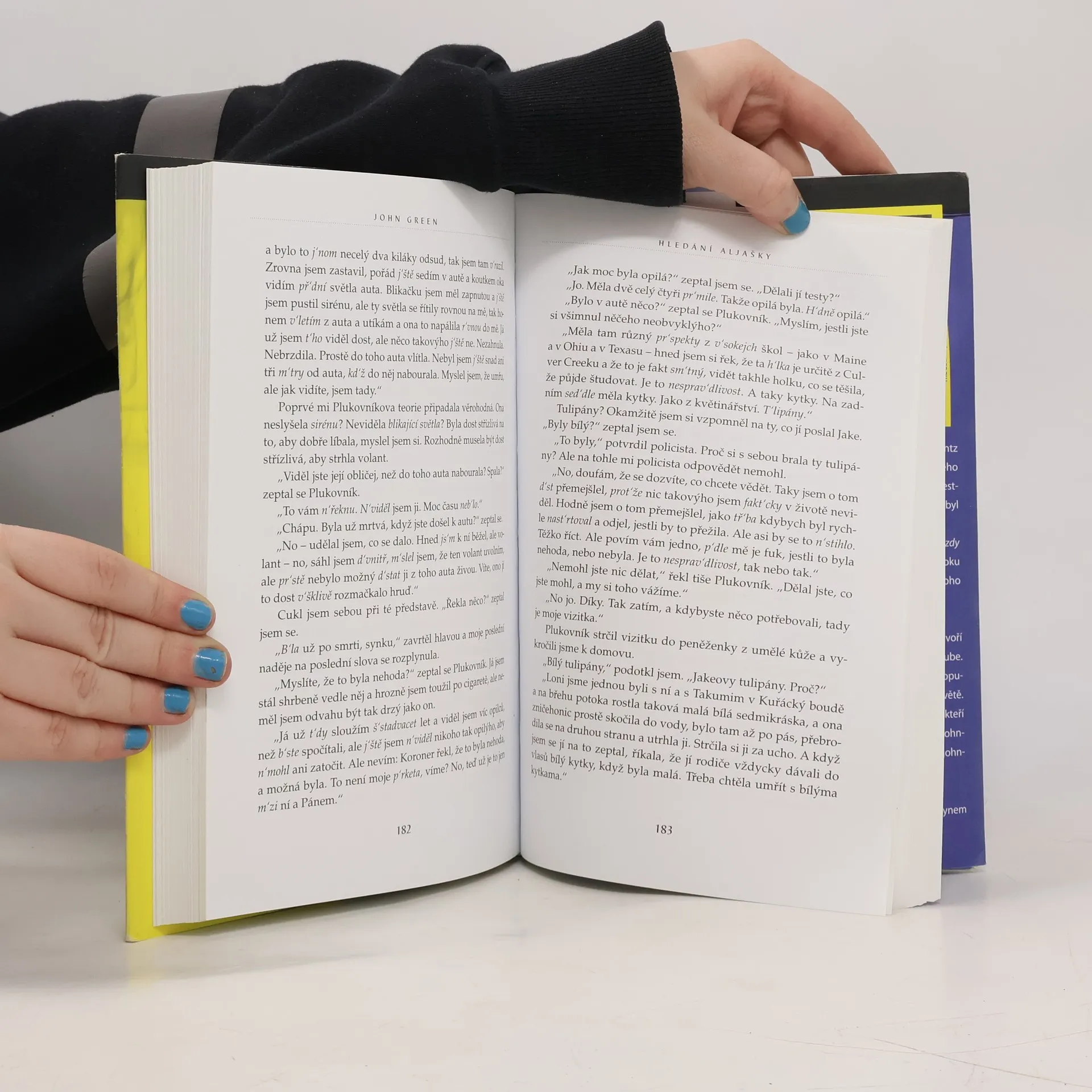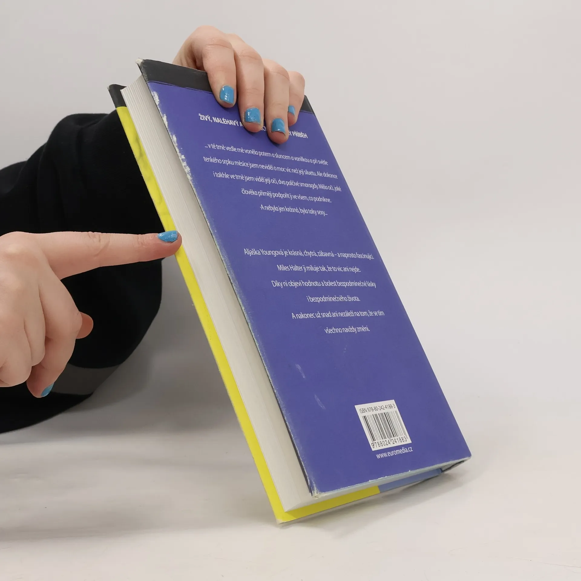 Románový debut dnes už známého Johna Greena je strhujícím vyprávěním o dospívání a hledání sama sebe. Šestnáctiletý Miles, posedlý sbíráním posledních slov významných osobností a touhou hledat „velké Možná“, je spíše outsiderem mezi svými vrstevníky. Jeho život získá zcela novou podobu, když přejde na internátní školu Culver Creek. Zde se rychle spřátelí se svérázným spolubydlícím a okouzlující, naprosto nepředvídatelnou Aljaškou Youngovou. Okamžitě je vtažen do světa, kde se porušují školní pravidla, pořádají různé večírky i provokace. Miles ožívá v dennodenním kontaktu s novými kamarády a stále víc miluje fascinující Aljašku. A tak vývoj směřuje k okamžiku, kdy se všechno nečekaně navždy změní... Živý, naléhavý a nekonečně dojemný příběh. Americkou knihovnickou asociací byl zařazen mezi deset nejlepších knih pro dospívající.