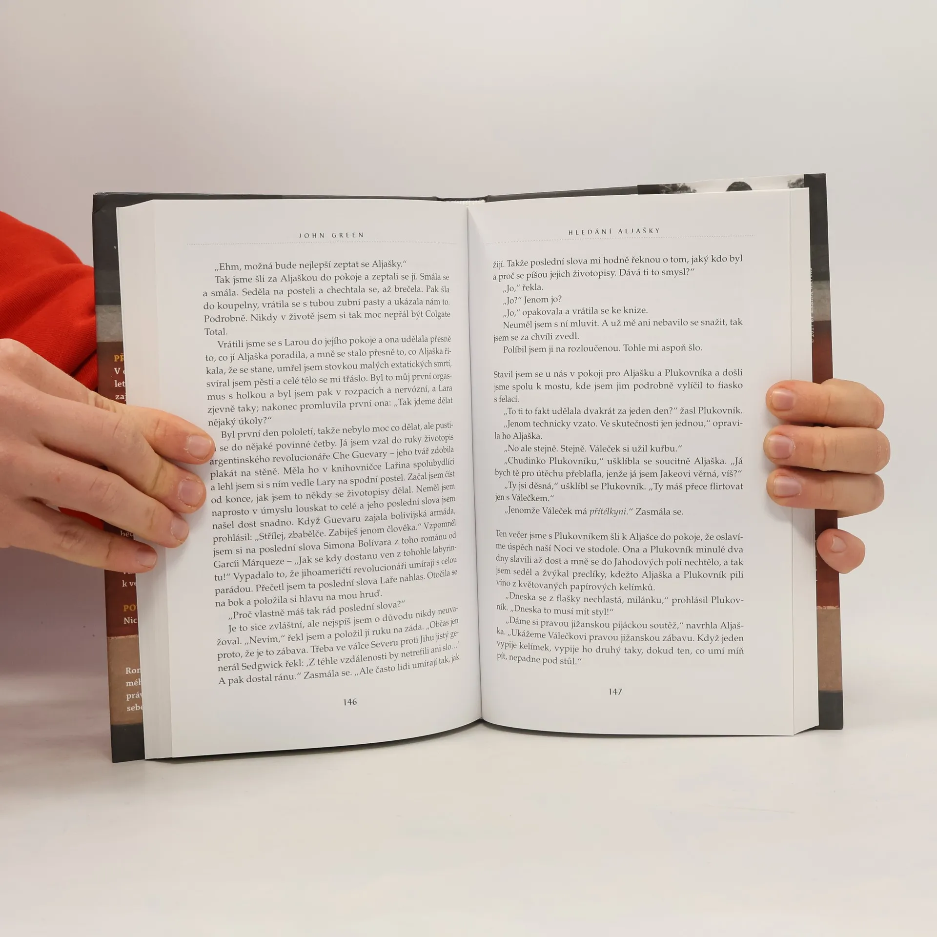 Románový debut dnes už známého Johna Greena je strhujícím vyprávěním o dospívání a hledání sama sebe. Šestnáctiletý Miles, posedlý sbíráním posledních slov významných osobností a touhou hledat „velké Možná“, je spíše outsiderem mezi svými vrstevníky. Jeho život získá zcela novou podobu, když přejde na internátní školu Culver Creek. Zde se rychle spřátelí se svérázným spolubydlícím a okouzlující, naprosto nepředvídatelnou Aljaškou Youngovou. Okamžitě je vtažen do světa, kde se porušují školní pravidla, pořádají různé večírky i provokace. Miles ožívá v dennodenním kontaktu s novými kamarády a stále víc miluje fascinující Aljašku. A tak vývoj směřuje k okamžiku, kdy se všechno nečekaně navždy změní... Živý, naléhavý a nekonečně dojemný příběh. Americkou knihovnickou asociací byl zařazen mezi deset nejlepších knih pro dospívající.