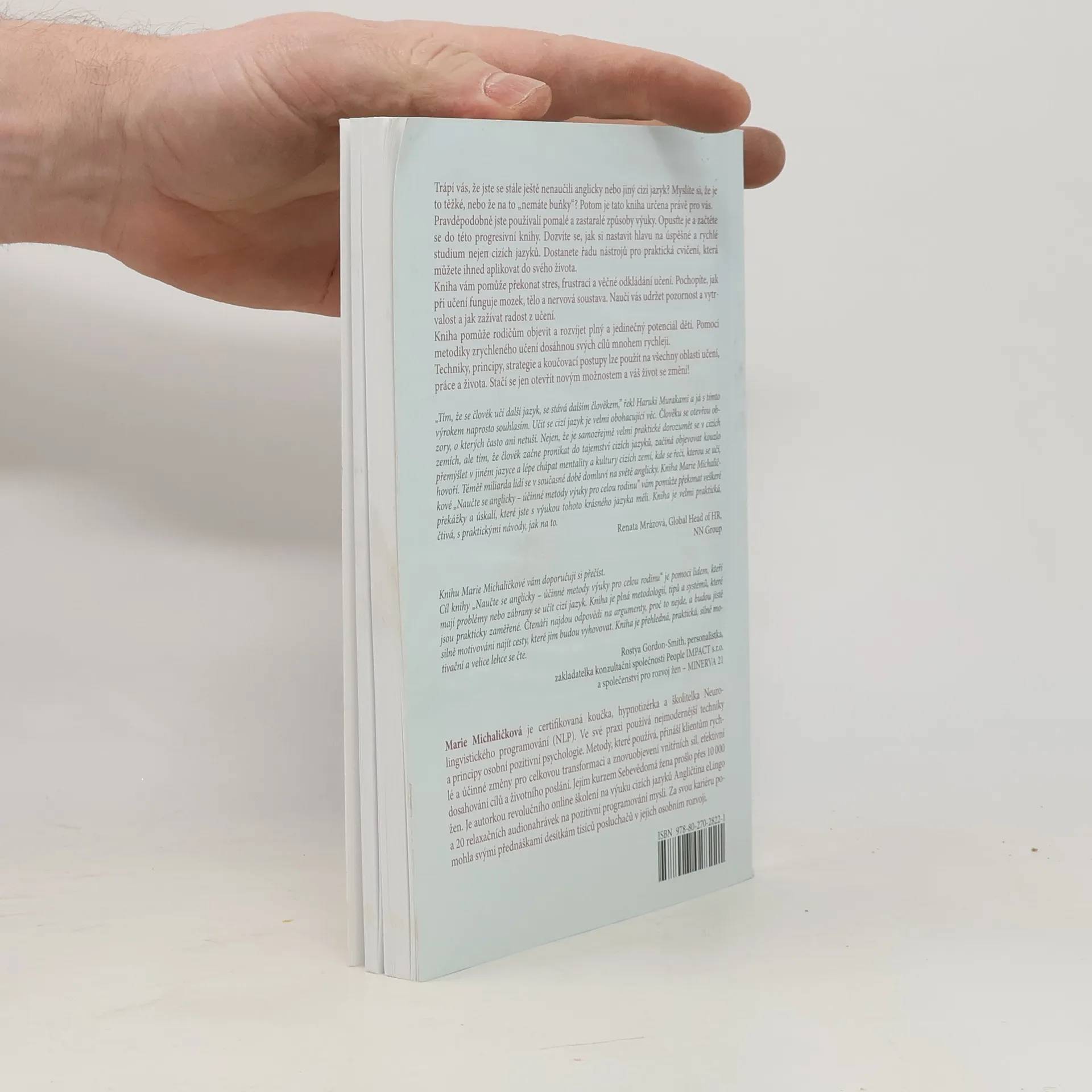 42 % lidí se učí angličtinu řadu let, ale jejich znalosti jsou stále na úrovni začátečníků. Je to i váš případ? Na vině jsou zastaralé postupy učení, které nevedou k požadovaným výsledkům. Dnešní doba je jiná. Moderní. Rychlá. A vyžaduje i jiné způsoby učení. Právě teď máte šanci na změnu. Vystupte ze začarovaného kruhu neúspěchu. Seznamte se s novou knihou Naučte se anglicky. Objevte tajemství nové metody učení, která využívá principy práce s podvědomím, techniky zrychleného učení, Neurolingvistického programování a hypnózy. Pravidla rychlého a efektivního učení využijete při učení jakéhokoli cizího jazyka, ale také při studiu jiných předmětů. Začněte se učit cokoli, teď už budete vědět jak. Kniha vám pomůže zbavit se mýtů o učení, paměti a talentu, a ukáže vám, jak se učit s radostí a bez stresu.