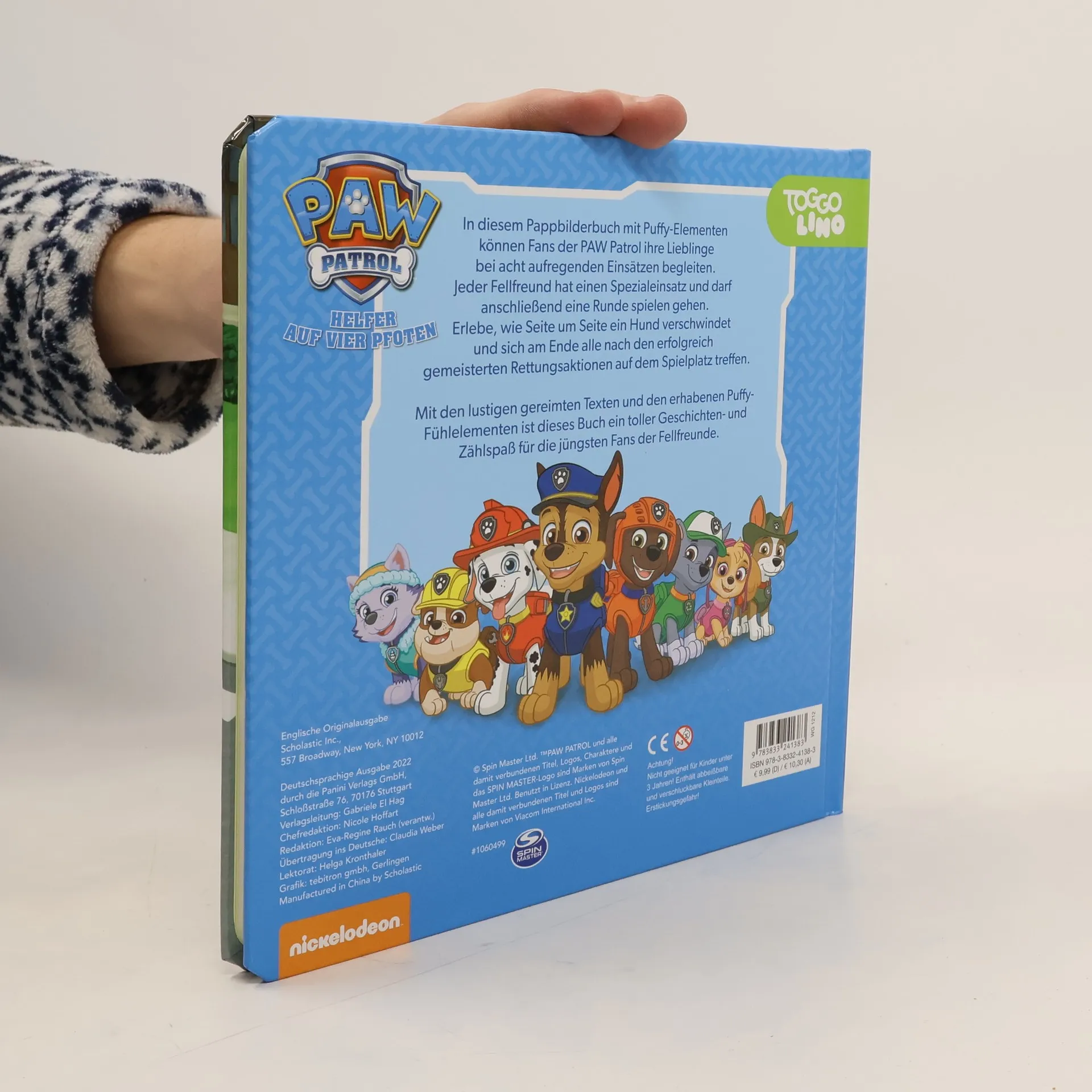 In diesem Pappbilderbuch mit Puffy-Elementen können Fans der PAW Patrol ihre Lieblinge bei acht aufregenden Einsätzen begleiten. Jeder Fellfreund hat einen Spezialeinsatz und darf anschließend eine Runde spielen gehen. Erlebe, wie Seite um Seite ein Hund verschwindet und sich am Ende alle nach den erfolgreich gemeisterten Rettungsaktionen auf dem Spielplatz treffen