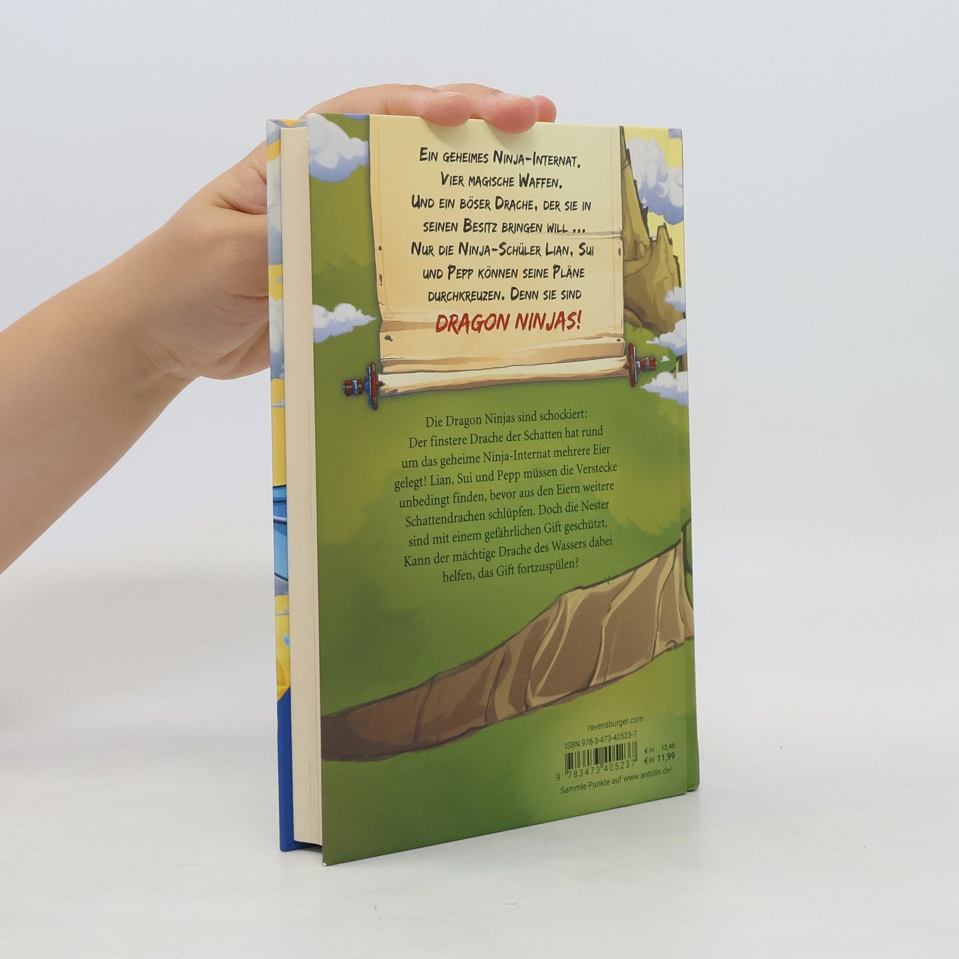 Diese Ninjas sind drachenstark! Die Dragon Ninjas sind schockiert: Der finstere Drache der Schatten hat rund um das geheime Ninja-Internat mehrere Eier gelegt! Lian, Sui und Pepp müssen die Verstecke unbedingt finden, bevor aus den Eiern weitere Schattendrachen schlüpfen. Doch die Nester sind mit einem gefährlichen Gift geschützt. Kann der mächtige Drache des Wassers dabei helfen, das Gift fortzuspülen? Ein geheimes Ninja-Internat. Vier magische Waffen. Und ein böser Drache, der sie in seinen Besitz bringen will ... Nur die Ninja-Schüler Lian, Sui und Pepp können seine Pläne durchkreuzen. Denn sie sind Dragon Ninjas! Drachenstarke Kinderbücher ab 8 Jahre über Mut, Freundschaft und Selbstbewusstsein. Eine tolle Geschenkidee für Jungen und Mädchen! Entdecke alle Abenteuer der „Dragon Ninjas“-Reihe: Band 1: Der Drache der Berge Band 2: Der Drache des Feuers Band 3: Der Drache des Himmels Band 4: Der Drache der Erde Band 5: Der Drache der Schatten Band 6: Der Drache des Wassers