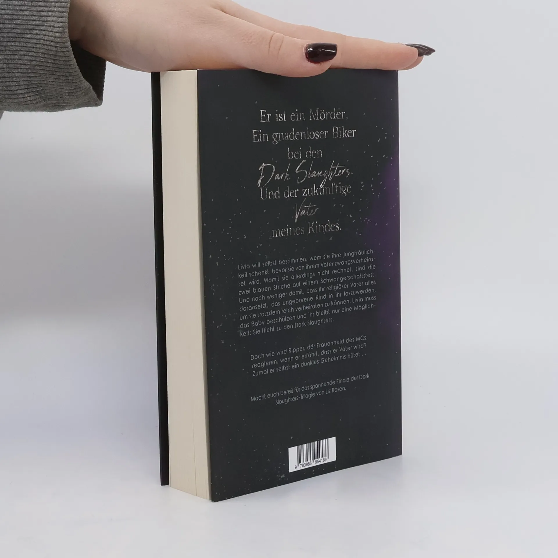 Er ist ein Mörder.Ein gnadenloser Biker bei den Dark Slaughters.Und der zukünftige Vater meines Kindes. Livia will selbst bestimmen, wem sie ihre Jungfräulichkeit schenkt, bevor sie von ihrem Vater zwangsverheiratet wird. Womit sie allerdings nicht rechnet, sind die zwei blauen Striche auf einem Schwangerschaftstest. Und noch weniger damit, dass ihr religiöser Vater alles daransetzt, das ungeborene Kind in ihr loszuwerden, um sie trotzdem reich verheiraten zu können. Livia muss das Baby beschützen und ihr bleibt nur eine Möglichkeit: Sie flieht zu den Dark Slaughters. Doch wie wird Ripper, der Frauenheld des MCs, reagieren, wenn er erfährt, dass er Vater wird? Zumal er selbst ein dunkles Geheimnis hütet ... Macht euch bereit für das spannende Finale der Dark Slaughters-Trilogie von Liz Rosen. Mit expliziten Szenen und einem prickelnden Happy End! Alle Teile sind unabhängig voneinander lesbar.