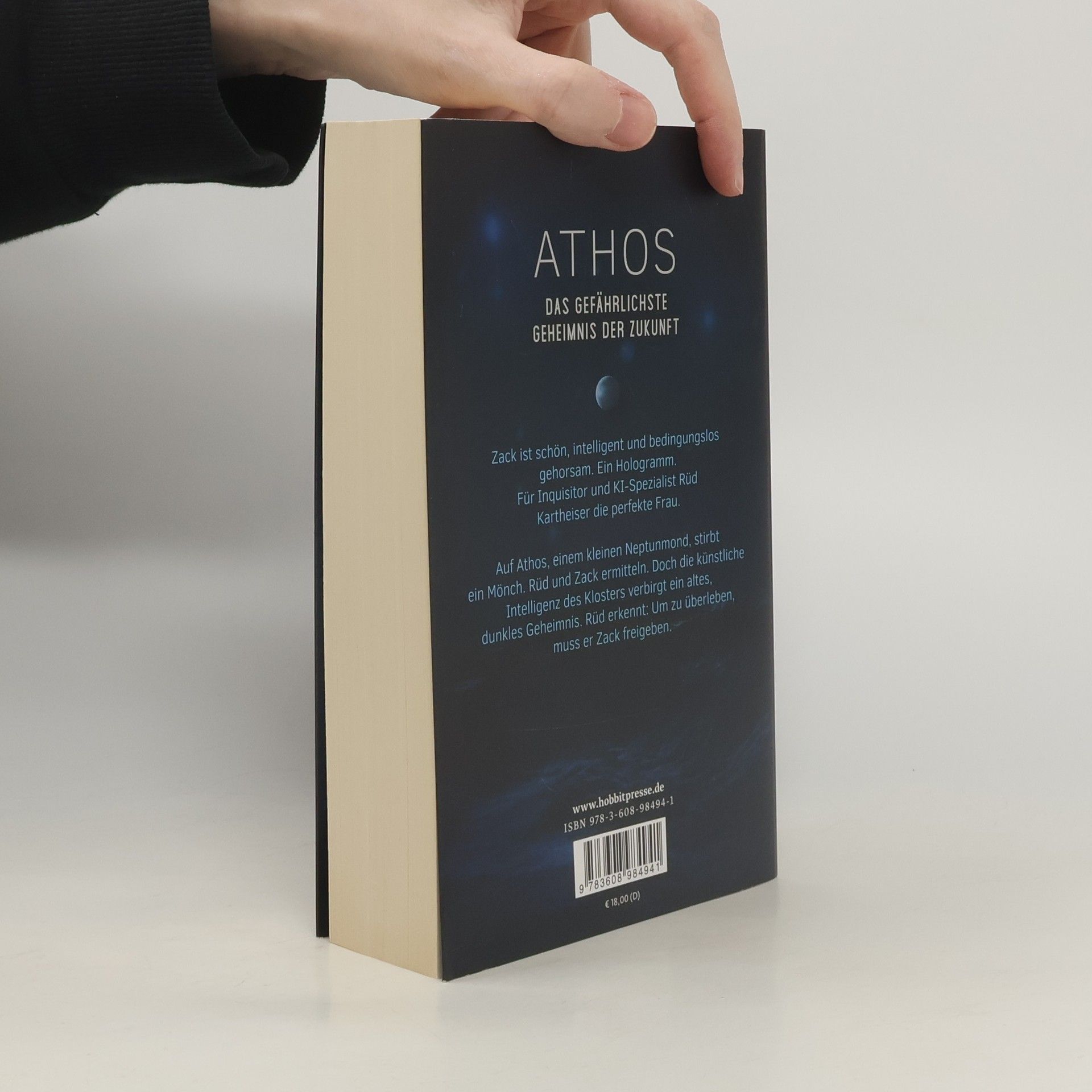 Athos. Das gefährlichste Geheimnis der Zukunft.Auf Athos, einem kleinen Neptunmond, stirbt ein Mönch. Rüd Kartheiser, Inquisitor und Spezialist für lebenserhaltende künstliche Intelligenzen, ermittelt. An seiner Seite: Seine Assistentin Zack. Schön, intelligent und bedingungslos gehorsam. Ein Hologramm. Für Rüd die perfekte Frau. Doch das Kloster des Athos verbirgt ein altes, dunkles Geheimnis. Rüd erkennt: Um zu überleben, muss er Zack freischalten.Das Jahr 2643: Der Neptunmond Athos ist zum Schauplatz eines unerklärlichen Verbrechens geworden. Die lebenserhaltende KI des Klosters steht im Verdacht, gemordet zu haben. Inquisitor Rüd Kartheiser, ein Spezialist im Verhören künstlicher Intelligenzen, wird mit dem Fall beauftragt. Zusammen mit seiner attraktiven holografischen Assistentin Zack, die ihm durch eine Reihe von Sicherheitsbeschränkungen absolut ergeben ist, erreicht er den kleinen, zerklüfteten Mond. Doch die Ermittlungen der beiden treffen auf Widerstand. Während Zacks anziehende Erscheinung bei den Mönchen Anstoß erregt, entpuppt sich die KI des Klosters als gerissene Taktikerin, die ihr Handeln geschickt verschleiert. Als sich unter den Mönchen ein zweiter Todesfall ereignet, begreift Rüd, dass er mehr als je zuvor auf Zacks Hilfe angewiesen ist. Um ihr Potential auszuschöpfen, trifft er – hinsichtlich ihrer Sicherheitsbeschränkungen – eine folgenschwere Entscheidung.