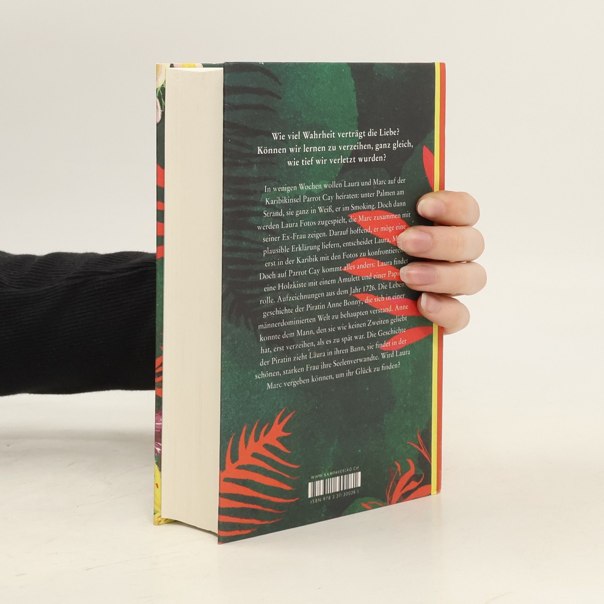 Laura Bellmann lebt ein Leben, um das sie viele beneiden: beruflich erfolgreich, eine Wohnung mit Blick auf die Elbe, verlobt mit dem Mann ihrer Träume. In wenigen Wochen wollen sie heiraten: barfuß unter Palmen, sie ganz in Weiß, er im Smoking. Aber ist das auch das Leben, von dem Marc immer geträumt hat? Laura hat nie daran gezweifelt, bis ihr Fotos von seinem letzten Urlaub zugespielt werden, die nicht nur Marc und seine Kinder, sondern auch seine Ex-Frau Ellen zeigen. Getrieben von der Hoffnung, er möge eine plausible Erklärung liefern, entscheidet Laura, Marc erst in der Karibik mit den Fotos zu konfrontieren. Doch auf Parrot Cay kommt alles anders: Laura findet eine Holzkiste mit einem Amulett und einer Papierrolle. Aufzeichnungen aus dem Jahr 1726. Die Lebensgeschichte der Piratin Anne Bonny, die sich in einer männerdominierten Welt zu behaupten verstand. Anne konnte dem Mann, den sie wie keinen zweiten geliebt hat, erst verzeihen, als es zu spät war. Die Geschichte zieht Laura in ihren Bann. Wird sie Marc vergeben können, ehe alles verloren ist?