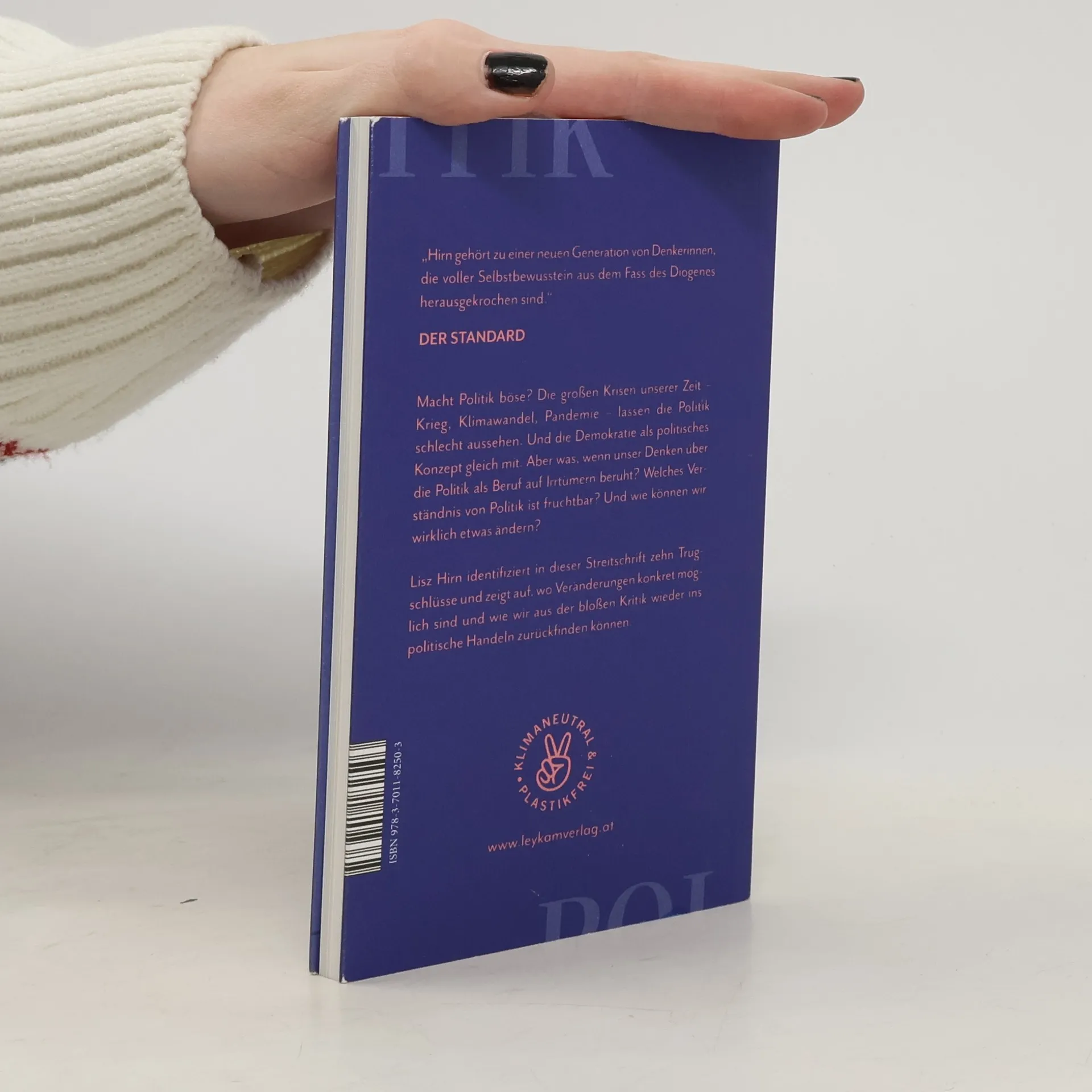 »Für eine neue politische Kultur« Fake News, Corona-Demos, Klimawandel – und nun auch noch Krieg: In den letzten Jahren hat sich einiges ereignet, das nicht gerade dazu führte, den Beruf des Politikers aufzuwerten oder die Demokratie als politisches Konzept zu stärken. Die Politik hatte zweifellos davor schon einen schlechten Ruf, aber der aktuelle Vertrauensverlust in die Politik ist besorgniserregend. Lisz Hirn zeigt in dieser Streitschrift zehn Trugschlüsse auf, die der Rede vom »politischen Sittenverfall« zugrunde liegen. Dabei geht es mit Rückgriff auf Max Weber, Hannah Arendt oder Machiavelli um moralische Integrität, den Vertrauensverlust in die Unabhängigkeit der Medien und um Erfahrungen von Ungleichheit und fehlender politischer Repräsentation. Sie gibt einen Ausblick darauf, was Aktivismus ändern könnte oder ob wir grundsätzlich einen neuen Typus des Politikers brauchen.