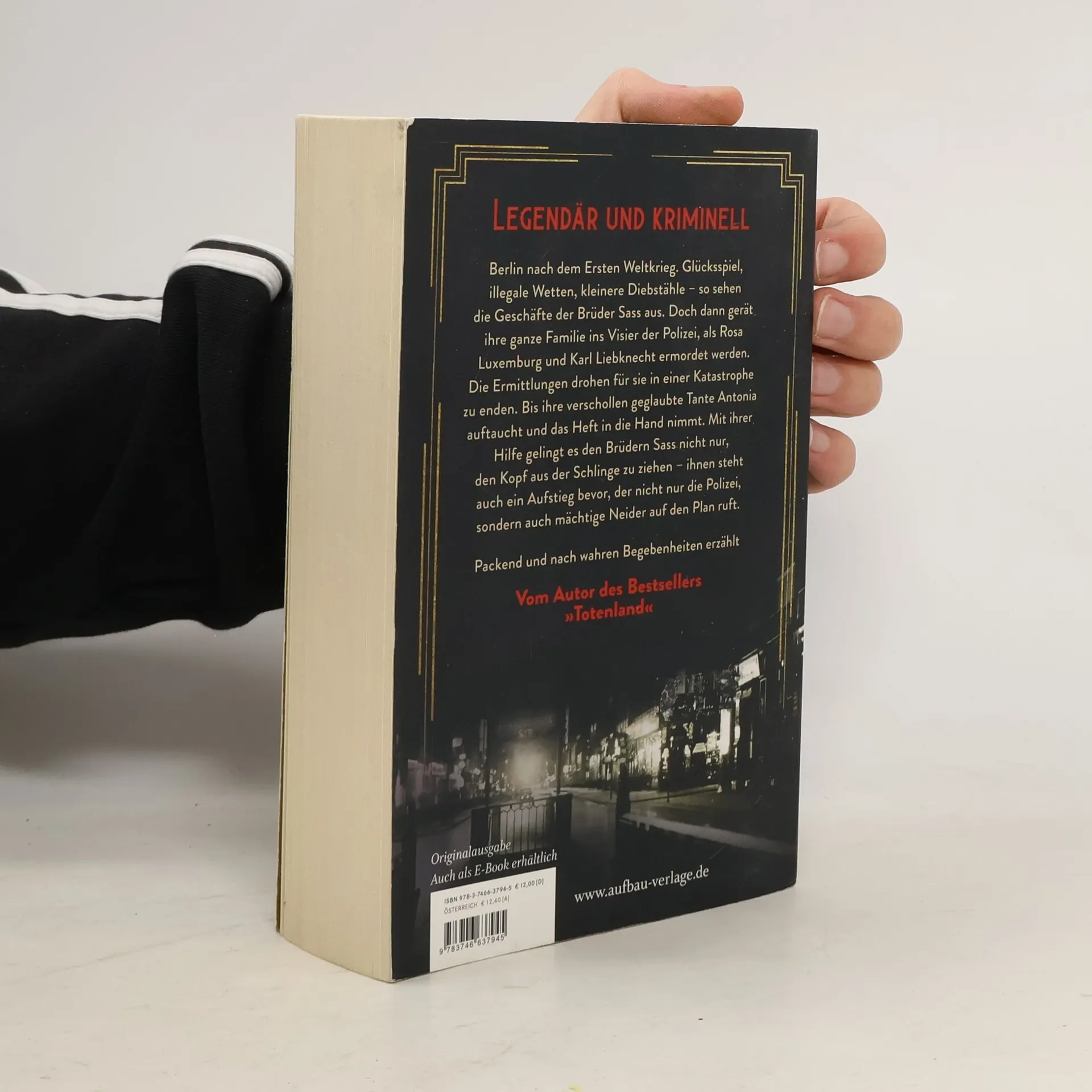 Legendär und kriminell Berlin nach dem Ersten Weltkrieg. Glücksspiel, illegale Wetten, kleinere Diebstähle – so sehen die Geschäfte der Brüder Sass aus. Doch dann gerät ihre ganze Familie ins Visier der Polizei, als Rosa Luxemburg und Karl Liebknecht ermordet werden. Die Ermittlungen drohen für sie in einer Katastrophe zu enden. Bis ihre verschollen geglaubte Tante Antonia auftaucht und das Heft in die Hand nimmt. Mir ihrer Hilfegelingt es den Brüdern Sass nicht nur, vorerst den Kopf aus der Schlinge zu ziehen – ihnen steht auch ein einzigartiger krimineller Aufstieg bevor, der nicht nur die Polizei, sondern auch mächtige Neider auf den Plan ruft. Packend und nach wahren Begebenheiten erzählt – wie die Verbrecherbande Sass ganz Berlin in Aufruhr versetzt