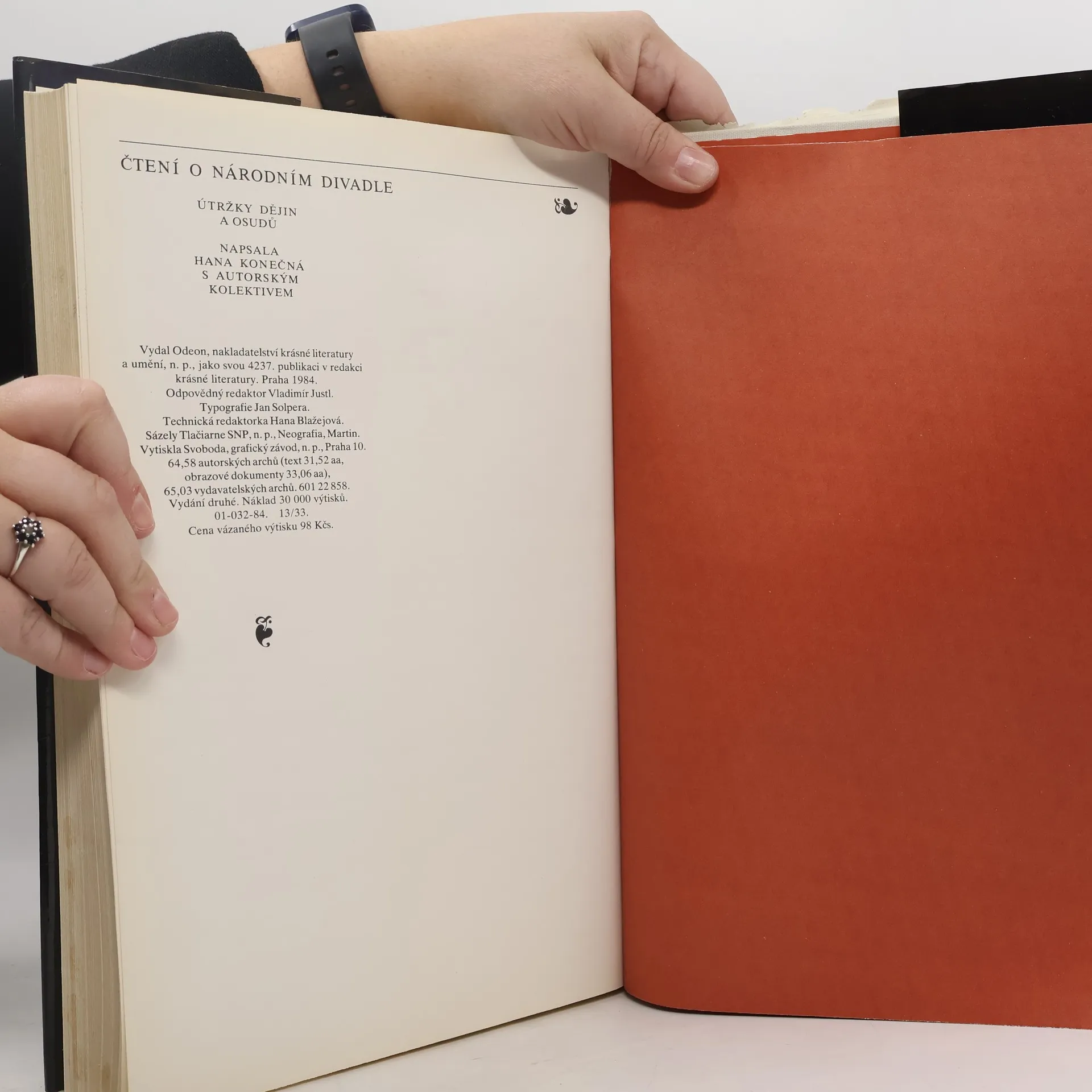 Útržky dějin Národního divadla od jeho vybudování, požár až do znovuotevření budovy po rekonstrukci. Osudy inscenací a hereckých osobností ND. Desítky obrazových ilustrací, kalendárium, jmenný rejstřík. Zpracoval autorský kolektiv Hana Konečná, Ljuba Klosová, Jaromír Paclt, Věra Ptáčková, Ivana Vadlejchová, Jindřich Černý, Václav Štěpán, Zina Trochová, Zdena Benešová, Jaroslav Krejčí. Velkoformátová publikace. 2. vydání
