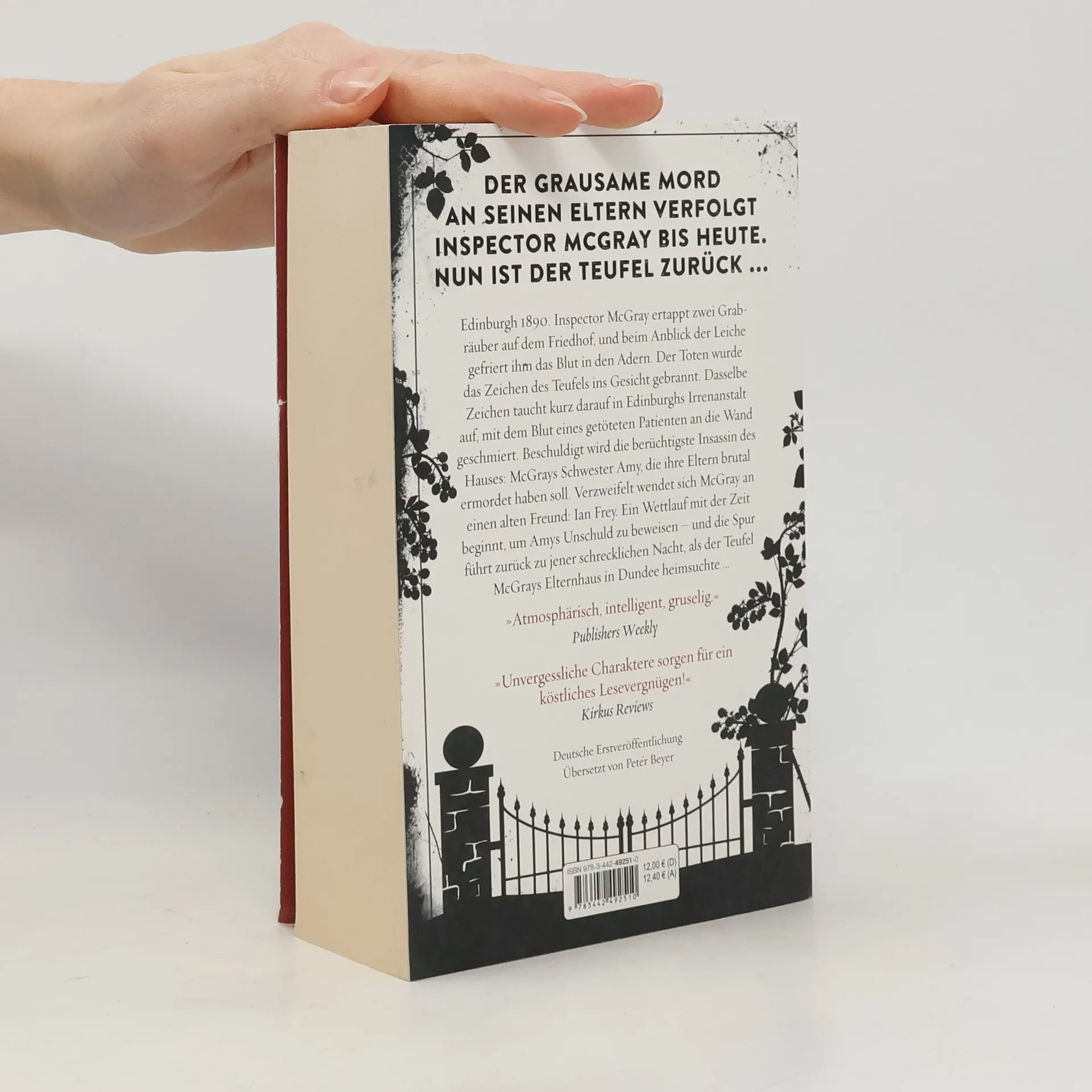 »Eine unglaublich unterhaltsame viktorianische Krimiserie!« The New York Times Edinburgh 1890. Inspector McGray ertappt zwei Grabräuber auf dem Friedhof, und beim Anblick der Leiche gefriert ihm das Blut in den Adern. Der Toten wurde das Zeichen des Teufels ins Gesicht gebrannt. Dasselbe Zeichen taucht kurz darauf in Edinburghs Irrenanstalt auf, mit dem Blut eines getöteten Patienten an die Wand geschmiert. Beschuldigt wird die berüchtigste Insassin des Hauses: McGrays Schwester Amy, die ihre Eltern brutal ermordet haben soll. Verzweifelt wendet sich McGray an einen alten Freund: Ian Frey. Ein Wettlauf mit der Zeit beginnt, um Amys Unschuld zu beweisen – und die Spur führt zurück zu jener schrecklichen Nacht, als der Teufel McGrays Elternhaus in Dundee heimsuchte …