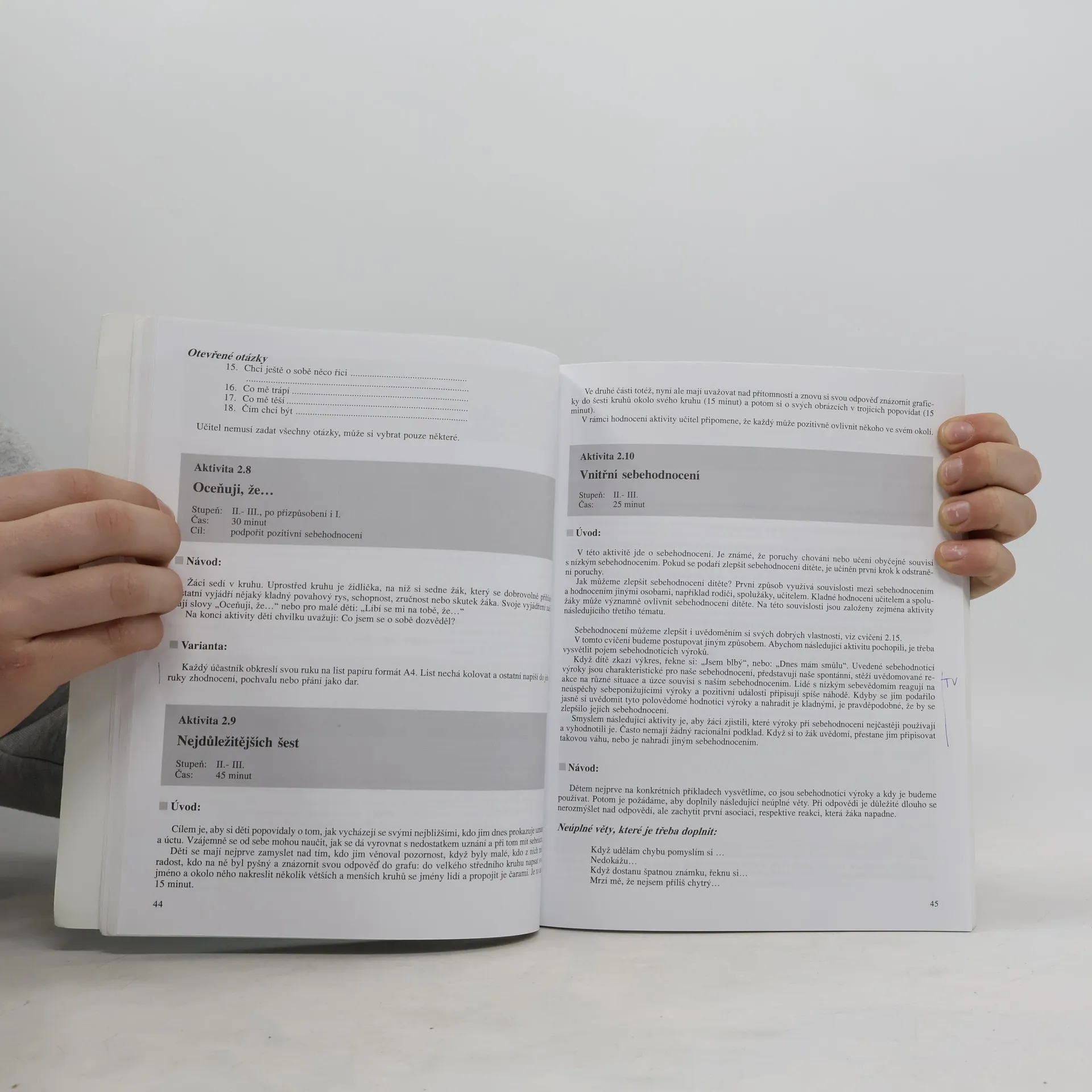 Metodický materiál se zabývá deseti tématy etické výchovy: komunikací, důstojností člověka, pozitivním hodnocením druhých, tvořivostí a iniciativou, komunikací citů, empatií, asertivitou, reálnými a zobrazenými vzory, spoluprácí, pomocí. K tématům jsou připojeny praktické aktivity pro různý věk nebo ročník žáků.