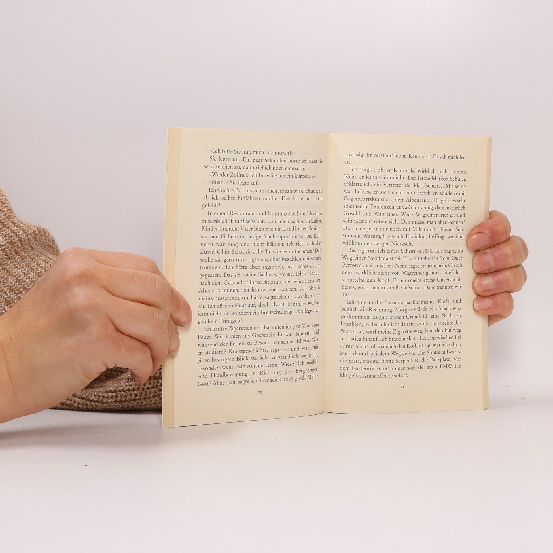 Mit kleineren Gelegenheitsarbeiten schlägt sich Sebastian Zöllner nach seinem Kunstgeschichtsstudium so durch, aber nun hat er einen ganz großen Fisch an der Angel: Er schreibt die Biographie des Malers Kaminski, der, entdeckt und gefördert einst von Matisse und Picasso, durch eine Pop-Art-Ausstellung, seine dunkle Brille und die Bildunterschrift „Painted by a blind man“ weltberühmt wurde. Inzwischen lebt Kaminski zurückgezogen in den Alpen und ist ein wenig in Vergessenheit geraten. Soll die Biographie noch rechtzeitig zum Ableben fertig werden, und dieser Termin lässt natürlich größere Aufmerksamkeit erwarten, dann ist Eile geboten. Zöllner, der zunächst mit alten Freunden und Feinden, mit Sammlern und Galeristen gesprochen hat, macht sich zum Objekt seiner Begierde auf den Weg, um exklusive O-Töne zu bekommen. Womit er nicht gerechnet hat: Kaminski ist abgeschirmt durch ein ganzes Heer von Vertrauten, und als es dem Biographen endlich trickreich gelingt, die Bewacher loszuwerden und den Maler auf eine tagelange Reise im Auto mitzunehmen, erkennt er, dass er dem Alten, blind oder auch nicht, in keiner Weise gewachsen ist. Daniel Kehlmann hat einen hochironischen Roman geschrieben, in dem die Ereignisse immer neue und überraschende Wendungen nehmen, ein brillant witziges Verwirrspiel um Lebenslügen und Wahrheit, um Manipulation, um Moral und Kunst.