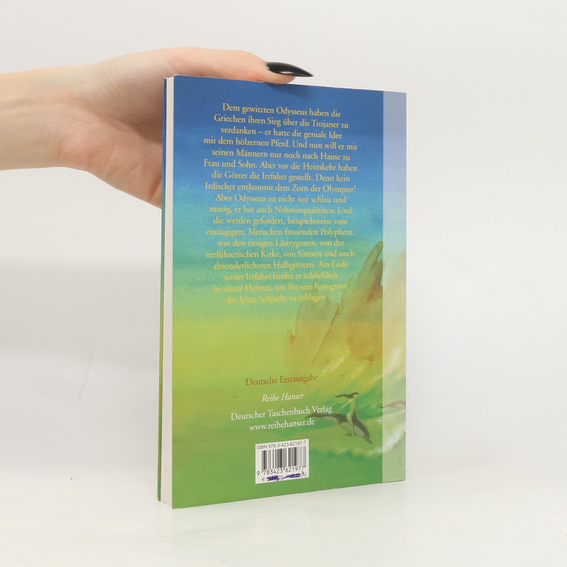 Evslin erzählt mit Witz, lebendig und in einer modernen Sprache das große Heldeneops nach. 10 lange Jahre hat der Inselfürst Odysseus am Krieg um Troja teilgenommen, und weitere 10 Jahre wurde er übers Meer getrieben mit seinen immer weniger werdenden Reisegefährten. Ein Spielball der Götter mit einem gerüttelt Maß an Mitschuld an seiner Lage. Gerissen und wortgewandt, neugierig: Ein Mann, der mit harten Bandagen kämpft, aber auch gut einstecken kann. Und diese Nehmerqualitäten werden auch gefordert, beispielsweise vom einäugigen Menschen fressenden Polyphem, von den riesigen Lästrygonen, die mit Felsen werfen (und auch treffen), von der verführerischen Zauberin Kirke, von Sirenen, Göttinnen und Göttern. All seiner Männer und seiner Habe beraubt, landet der Gebeutelte am Strand von Ithaka. Und als Verlierer nimmt er den Kampf auf gegen die Freier von Penelope, aus dem er als strahlender Sieger hervorgeht.