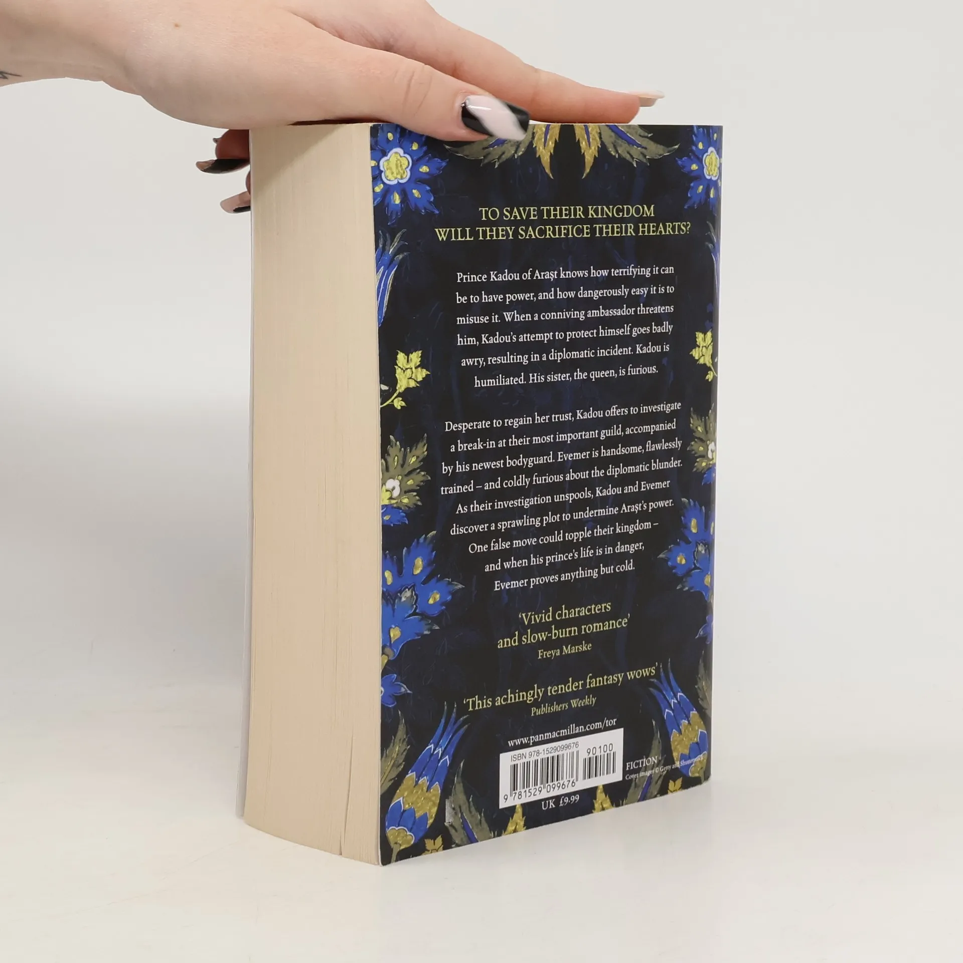 A Taste of Gold and Iron by Alexandra Rowland is a breathtaking fantasy romance set in an Ottoman-inspired world of courtly conspiracies and chivalric fealty, as Prince Kadou and his bodyguard Evemer investigate a counterfeiting operation that could topple their empire.
