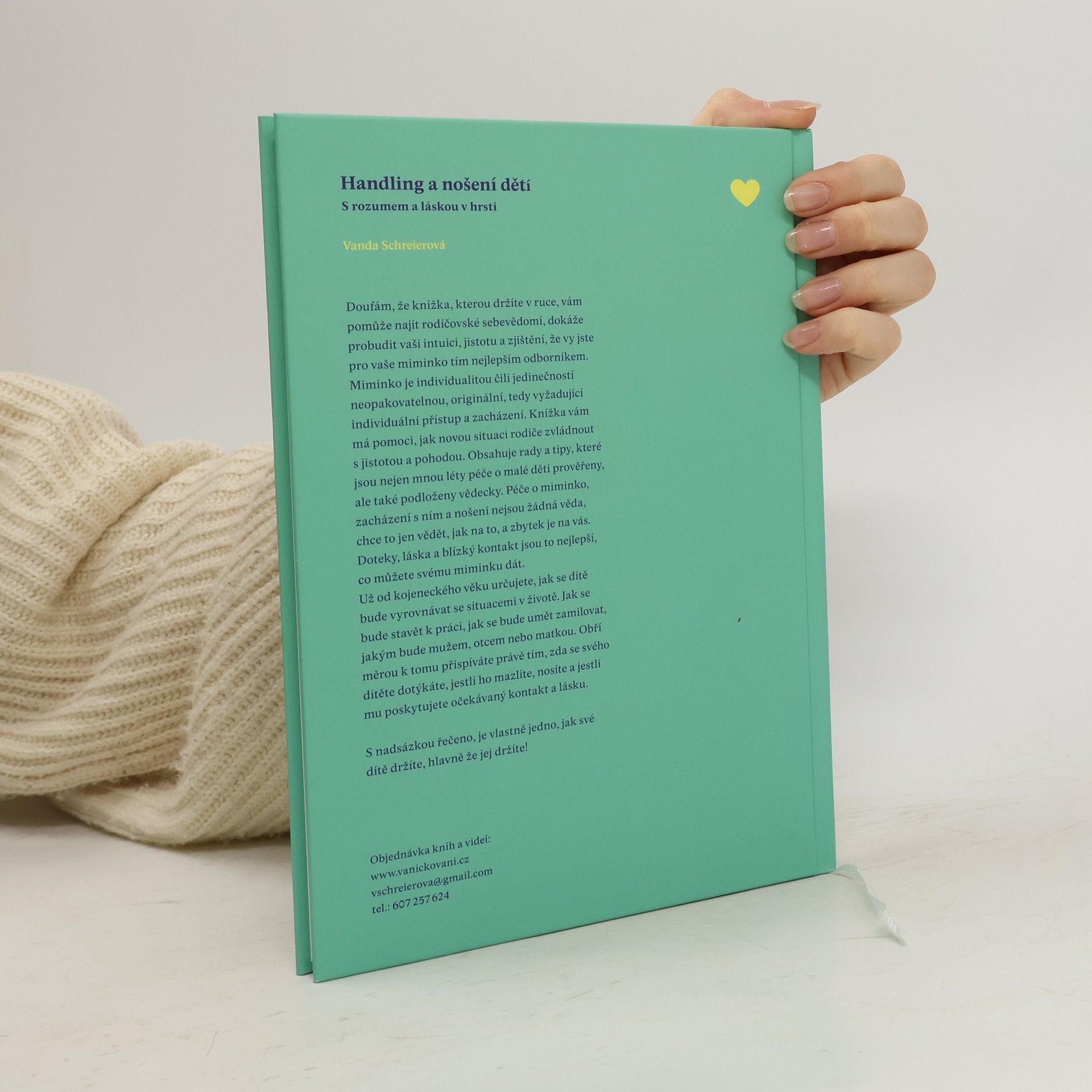 Zacházení s miminkem neboli handling - zcela přirozenou schopnost, kterou má každá milující matka v sobě, tzn. že umí intuitivně, tedy správně zvedat, nosit, oblékat, přebalovat své miminko. Toto laskavé a cituplné chování vůči dítěti lze těžko popsat slovy a Vanda Schreierová zvládá popis s lehkostí pomocí sledování pohybových schopností nejmenších dětí na principu znalostí vědeckého oboru kinestetiky.
